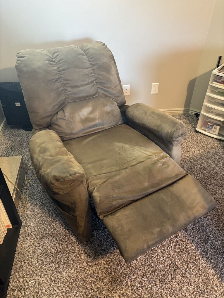 Used microfiber recliner chair. Still in great shape, just needs a little cleaning. No rips. First come, first serve.