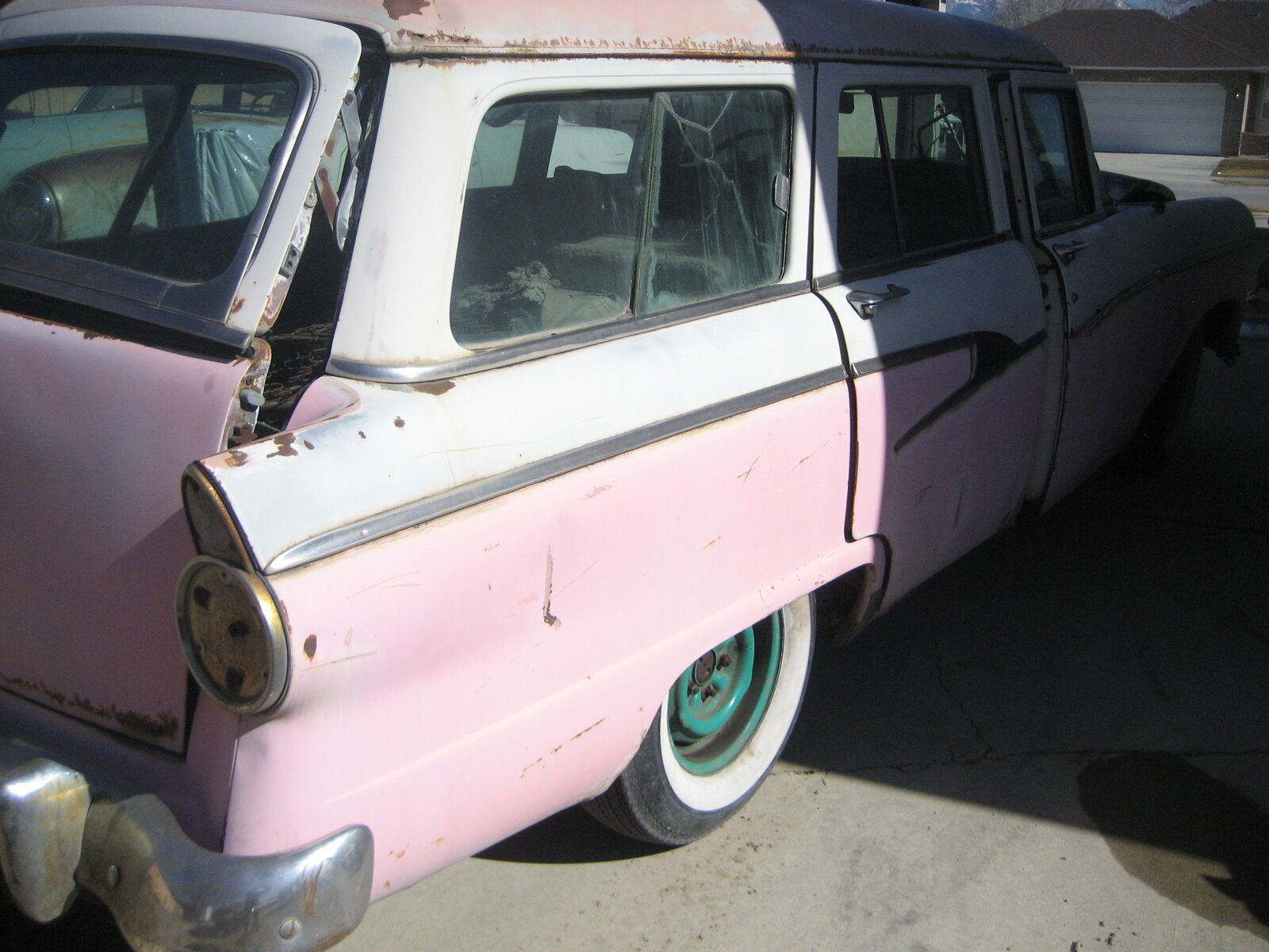 Parting 1956 Ford Customline Wagon. 292 CI V8 w/auto trans. Has Very Rare complete Factory A/C system and Power front seat. Call with your needs for prices,