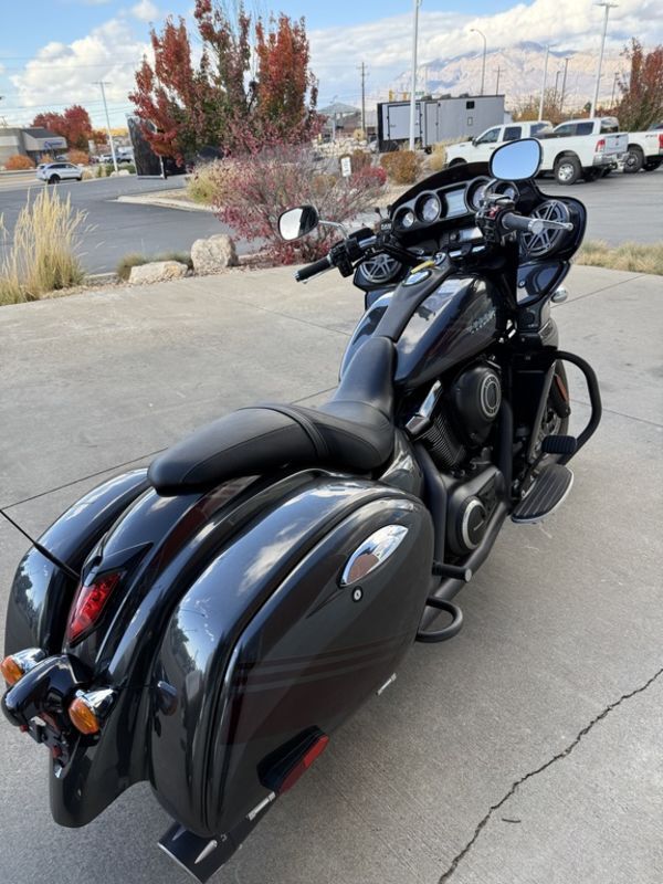Powered by a 1,700cc V-twin engine, it delivers strong low-end torque and a smooth ride whether you’re cruising around town or hitting the highway. The fixed fairing and hard saddlebags make it a great long-distance bike with plenty of storage.