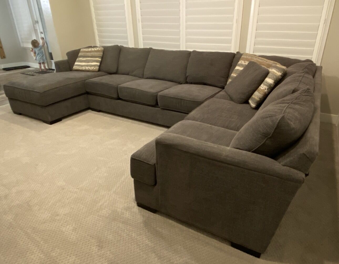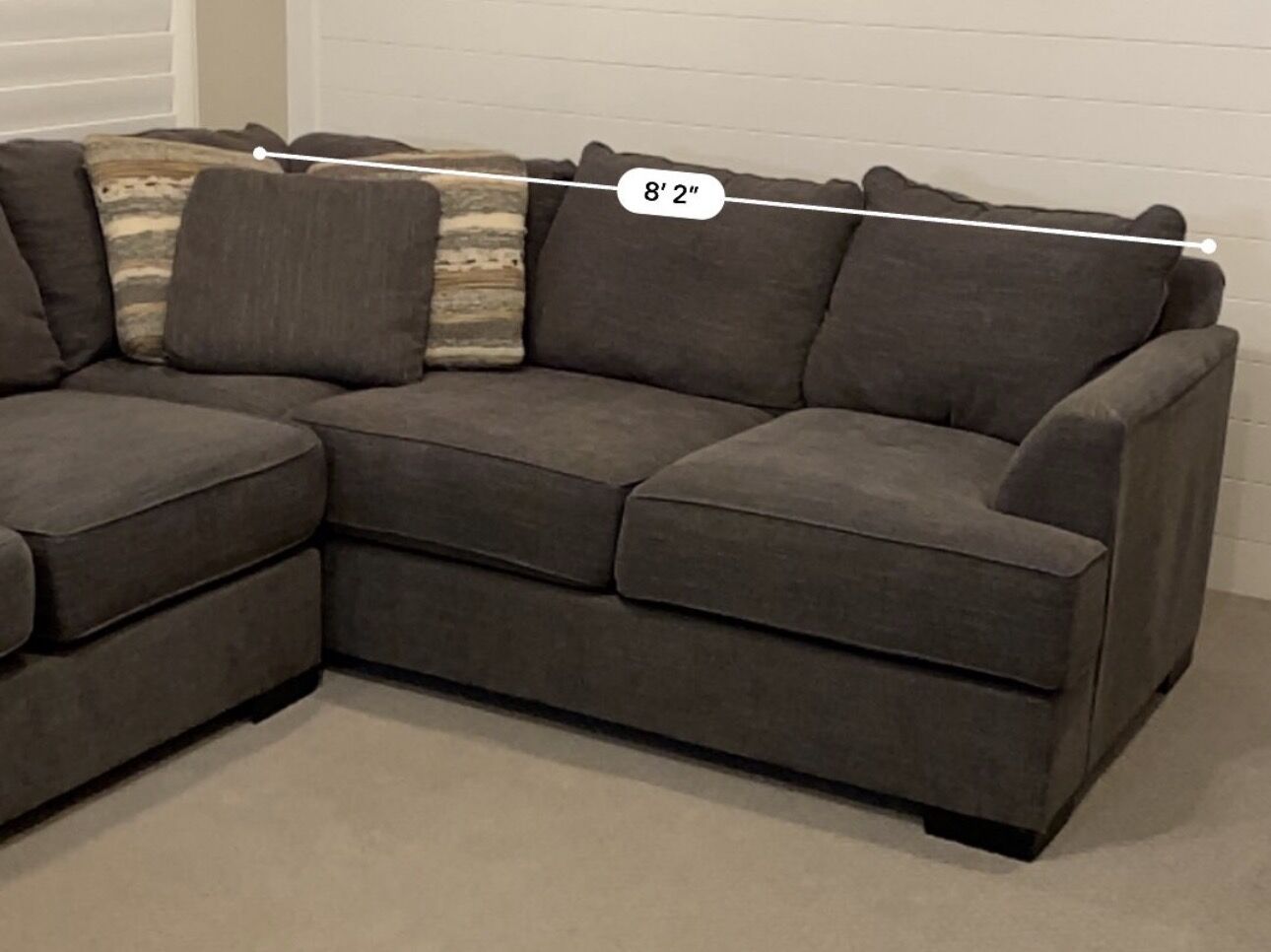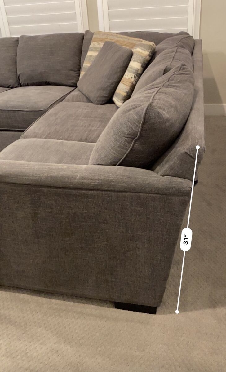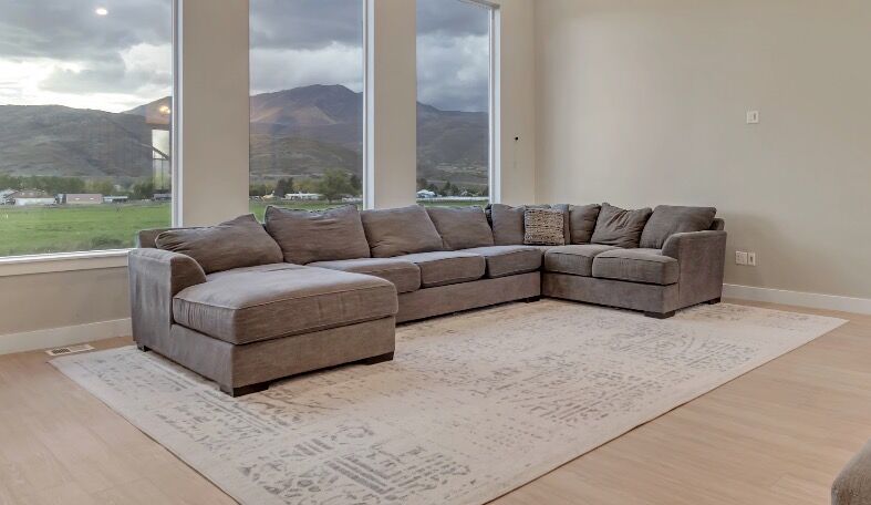 This beautiful, three-piece sectional is super comfortable, well loved, and in great shape. No tears or holes. It's ready for its new home! Located in Heber city Utah. Dimensions listed in photos. Cash only, Fcfs, no holds.