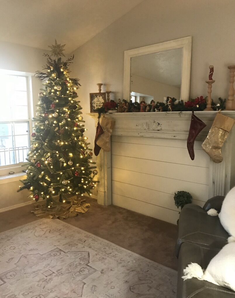 The mantel has a lightly distressed finish that gives it character and charm. It has been carefully removed and is uninstalled, ready for pickup. Might need a fresh coat of paint.