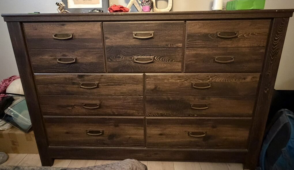 ZelleHeadboard footboard with metal slats Dresser Tall dresser Two night stands