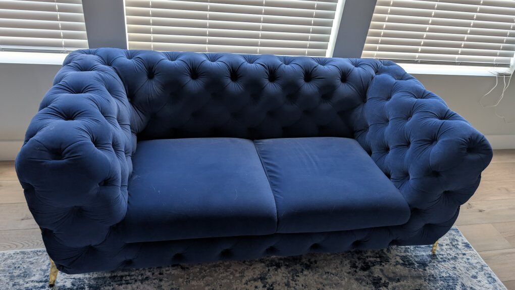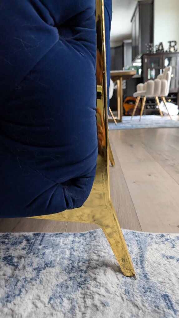 CashApp3 piece velvet living room set with gold hardware. Bought it for 3800 on Wayfair. This item is not available to purchase anymore. Used it for over a year, no spills, in great condition.