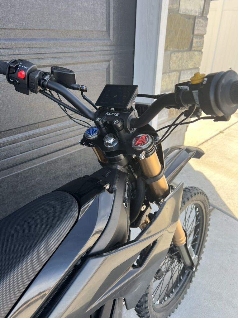 Battery: 97.2V 35Ah Samsung 50S battery Cells (3402Wh) Motor: Peak 22.5kW Hairpin Motor Controller: 450-Phase Amp Controller Suspension: Adjustable Air Spring Suspension Tires: Sigma F19, R19 / Sigma MX F19, R16 Lights: Front Headlight & Rear Taillight, Functional Brake Light and High Beam Brakes: 4-Piston Disk Brakes with 5 Regenerative Modes Display: 3.5 TFT Display with NFC Key