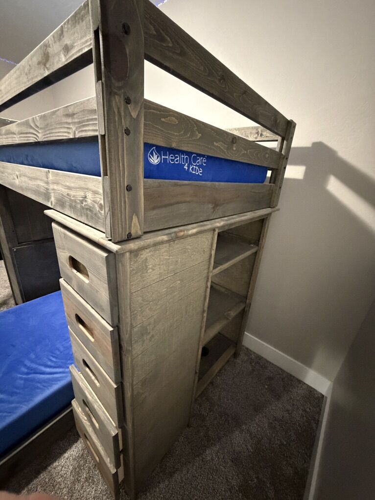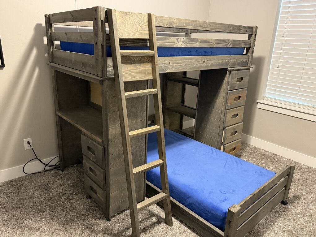 ApplePaySolid Wood Loft Bunk Bed Grey Drift Wood W Desk and Storage