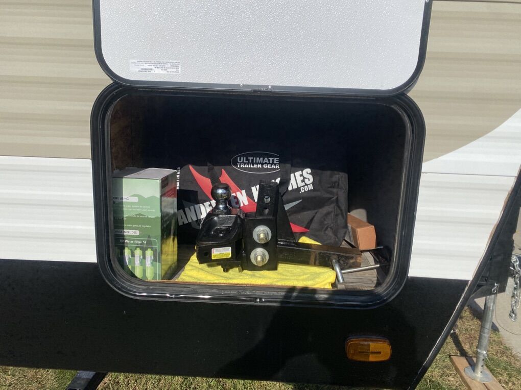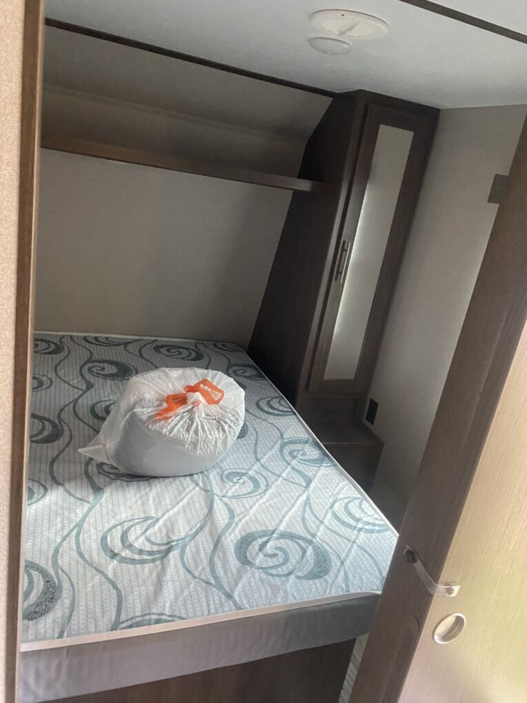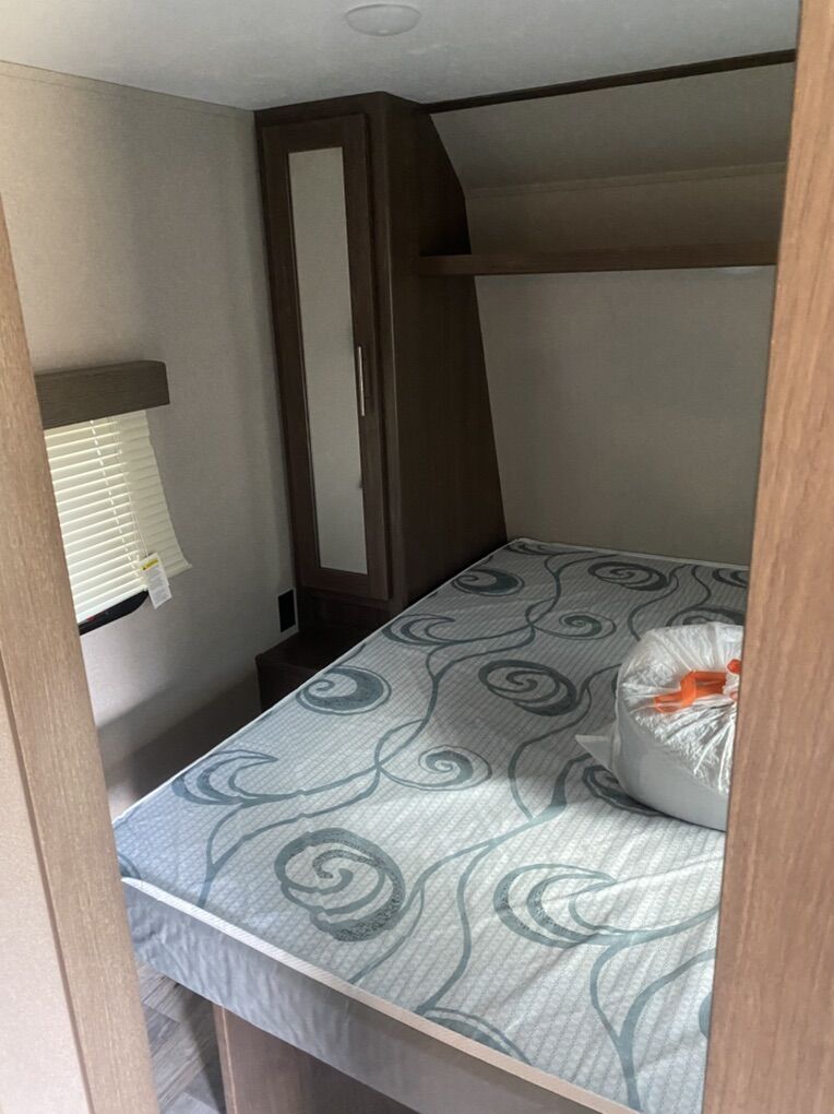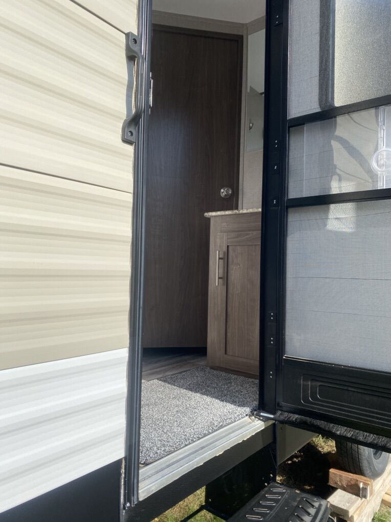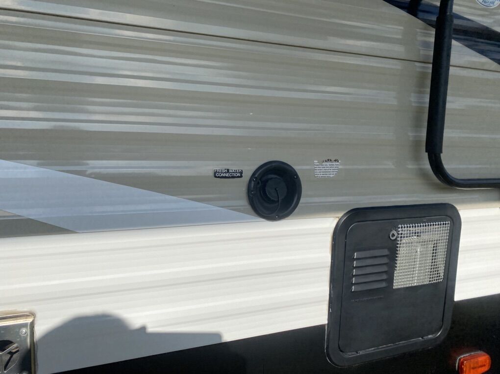Pristine condition, original owner and has rarely been used. Has traveled less than 2000 miles since new and may have stayed in it 3 or four trips. Never been pulled on dirt roads.This is a must see to appreciate and a rare find that would save thousands from a new one because this trailer is basically new. Trailer has many upgrades including 100w solar panel and battery charge and 2 - 6 volt golf cart batteries wired to create 12 volts for the trailer. This is a great system and you will have power for a long time. Many other accessories will be included. It is great for weekend trips with a large family and will sleep up to 10 people. Has two double bunk beds in the rear that will sleep 4. Couch will sleep 2. Dinette will sleep 2 and the master bedroom will sleep 2. It has a large tv and stereo system that will also play outside. It has a U-shaped dinette. Central heating and central Air Conditioning . Has a stove with an oven, microwave and large fridge. Note must be connected to an AC source such as a generator to run Air Conditioning, Microwave and AC outlets. There is a nice bathroom with a small tub and shower. Has 1 large slide out for kitchen and living area. Has a CO2 detector and smoke detector. Front master bedroom with closing door. It has an outside shower, a small outdoor kitchen with fridge and cooktop. Nice power awning with led outdoor lights. Nice pull down entry steps. Electric tongue jack, plenty of outside storage compartments and many other features. It has a water flush system for cleaning black water tanks. Items included: equalizer hitch, Anderson leveling system with stabilization blocks, extra drain hose with v connector to drain black and grey water at same time when connecting at a park, includes fresh water hose with pressure check valve and filter. Also a extra water heater anode. If interested come check it out so you can appreciate how well maintained this trailer is. Asking $17,000 and it is worth every penny. A reasonable offer may be accepted. No scammers please and only seriously interested contact us. You will never find a used trailer in a dealership in this condition so check it out.