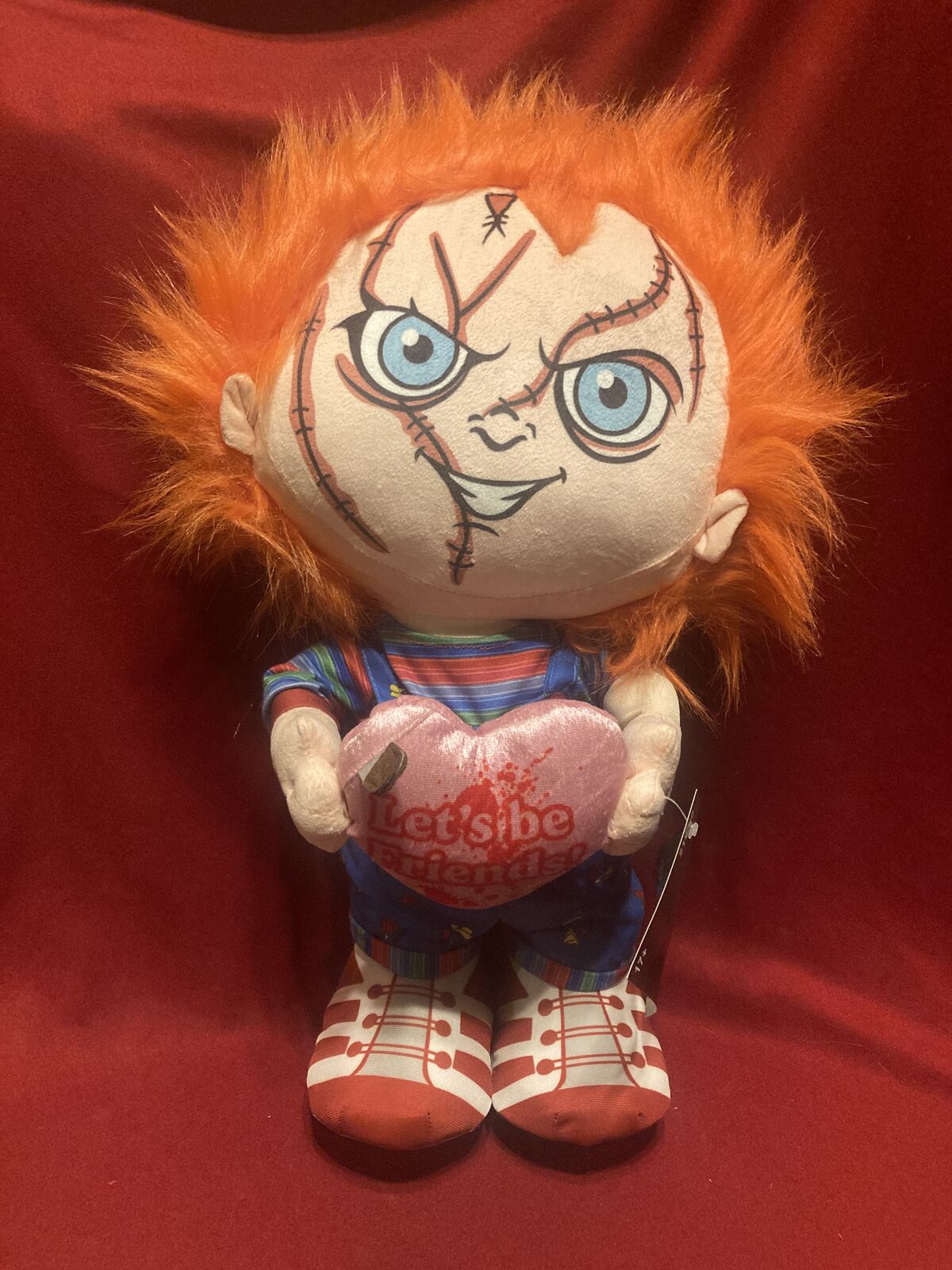 Hello I have a Rare Chucky Valentine Greeter Plush With Heart New Universal Gemmy 18 Inch Great Deal Sales for Alot More