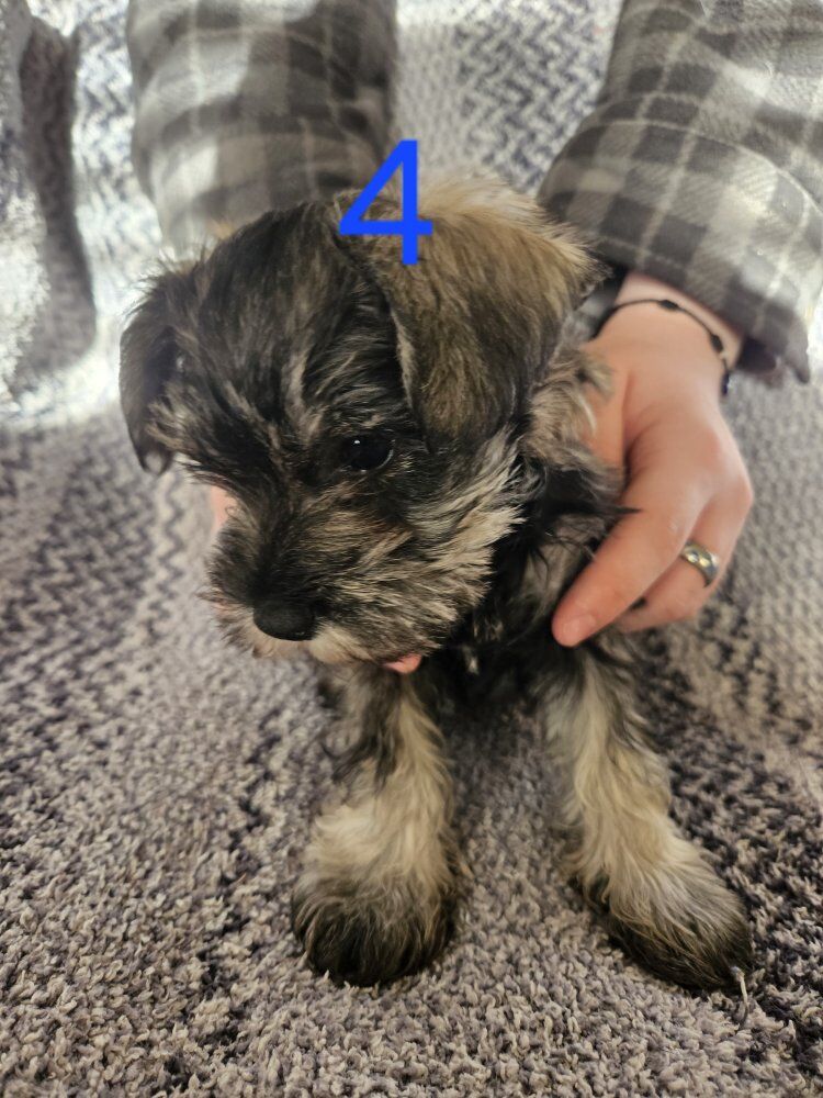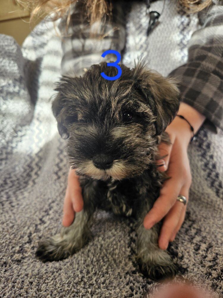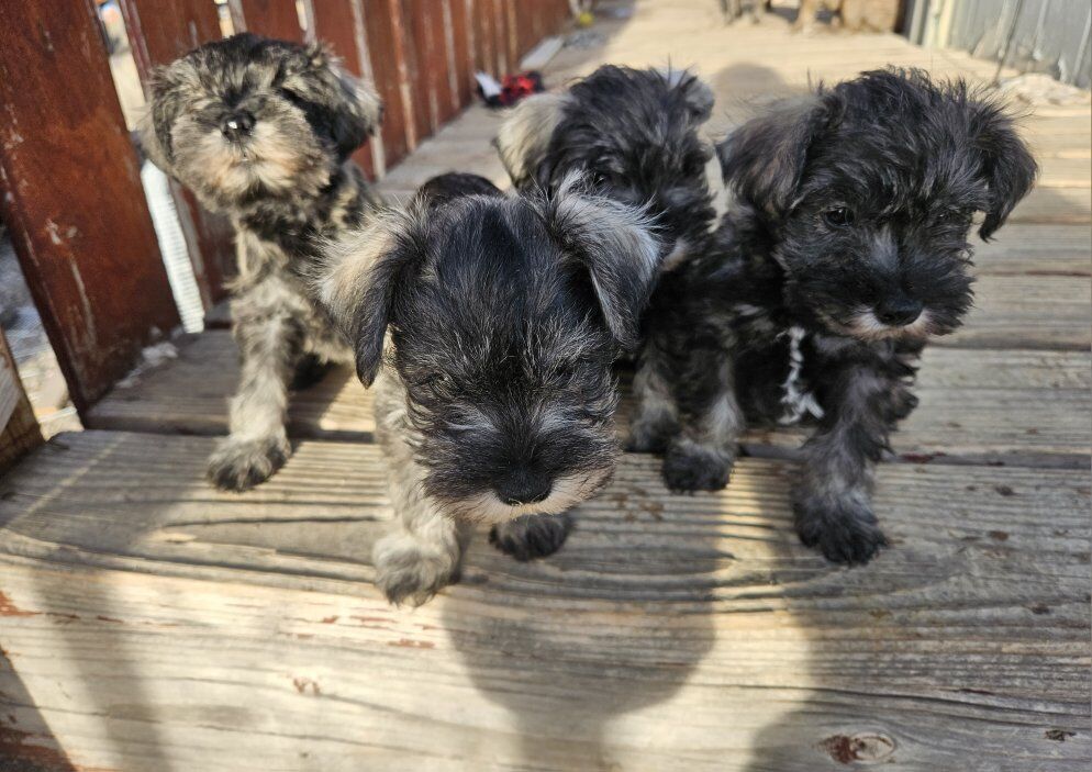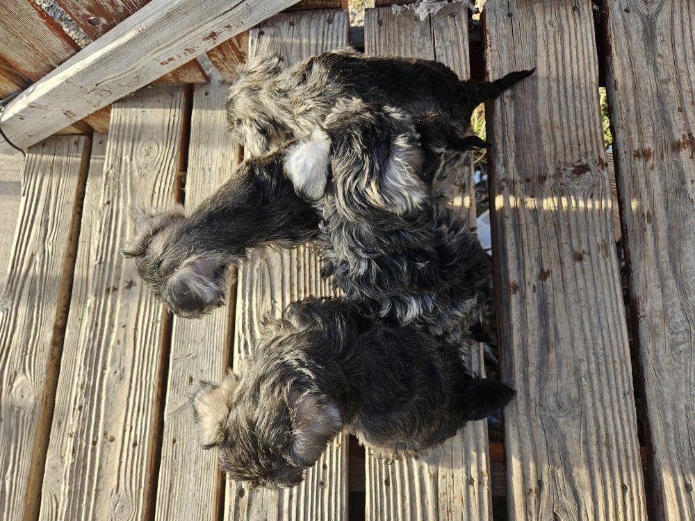 Purebred Schnauzer puppies ready for their forever homes, they were born December 21st. There are 4 boys available. They are very loving and playful. Because of my work hours I have not been able to get them to the vet for their shots so Im asking a reduced price.