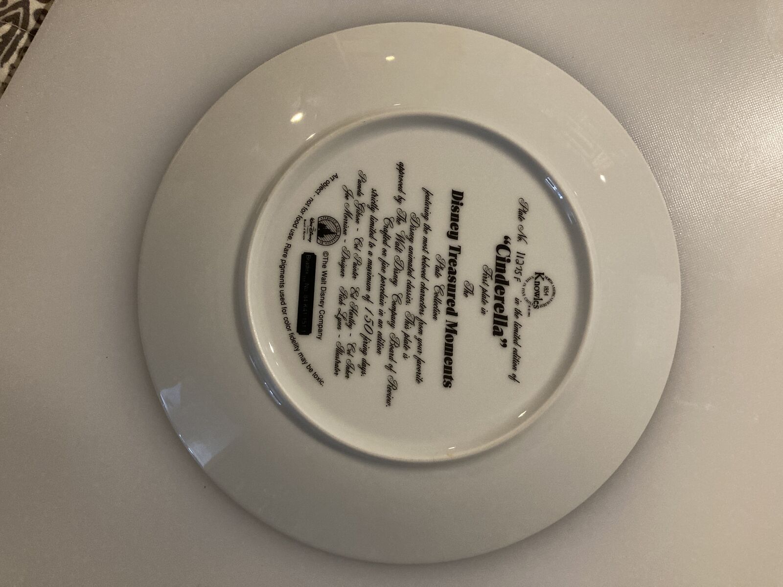 Zellehis is plate number 11275 F of a limited edition of the Walt Disney Company's "Cinderella", the first issue in the Disney Treasured Moments collection.
