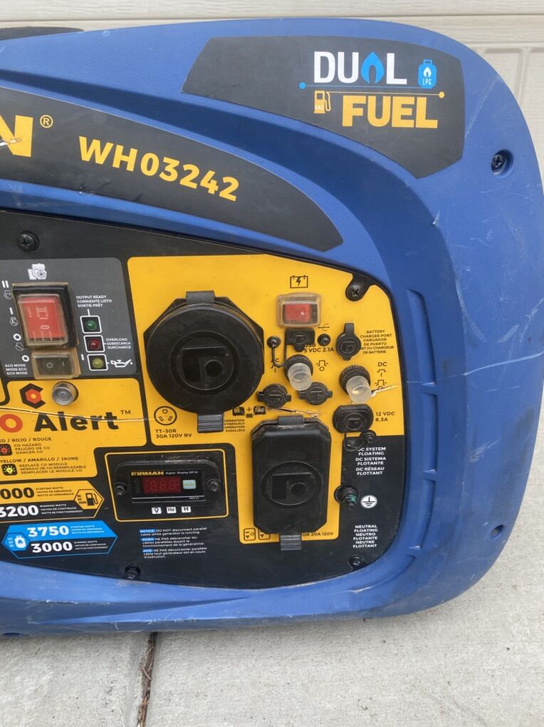 VenmoFirman WH03242 Dual Fuel Inverter Generator in good working condition. Runs strong and produces clean, stable power. Can run on gasoline or propane. Great for home backup, RVs, camping, or job sites.