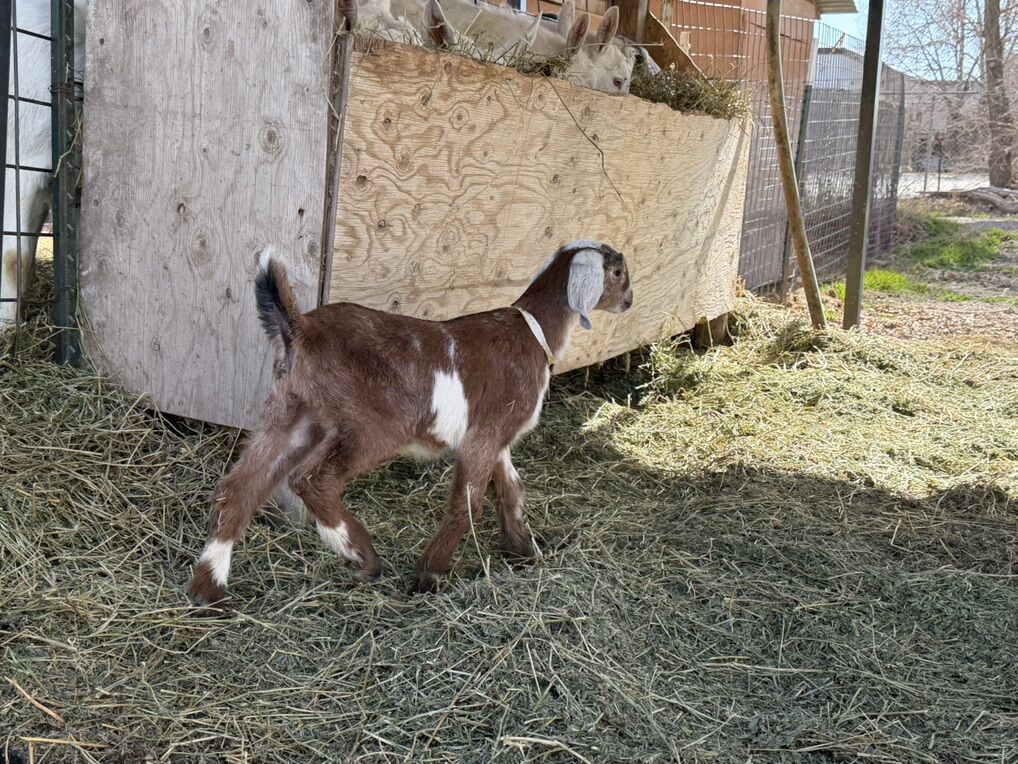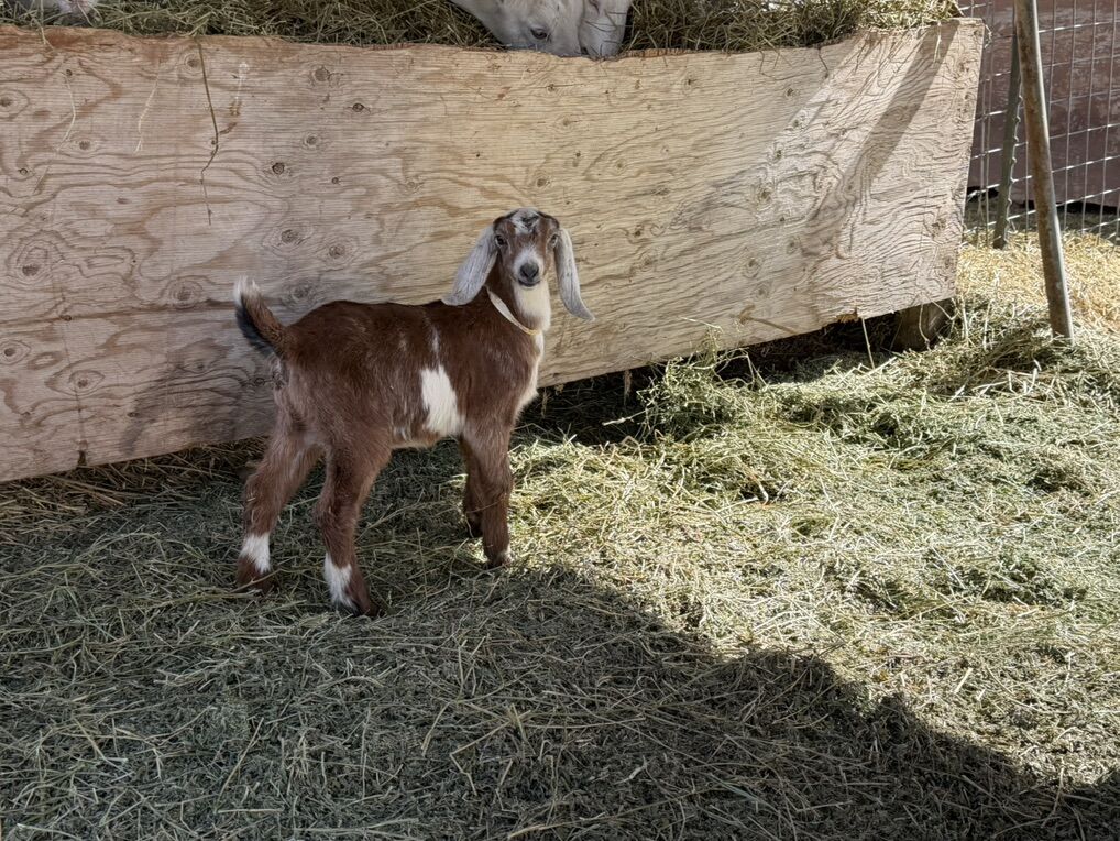 Bottle baby goat. Born 1/22/26 Nubian doe kid $175 without registration papers. $500 with papers.