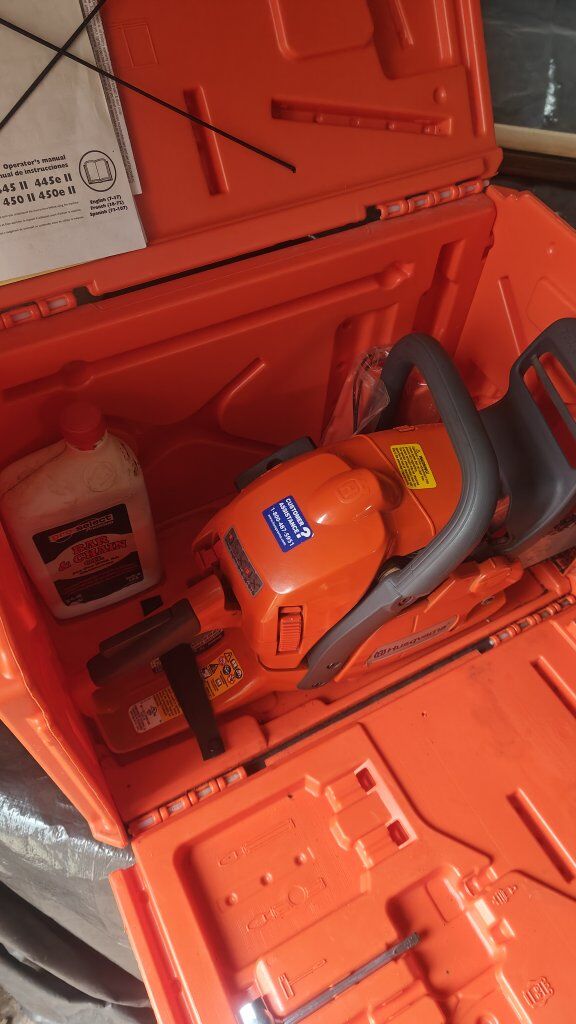 ZelleHusqvarna 20" 450 Rancher II Gas Chainsaw with Husqvarna Powerbox. Used less than 2 hours, great condition and great saw. Paid $625 for saw and box, will sell for $500.