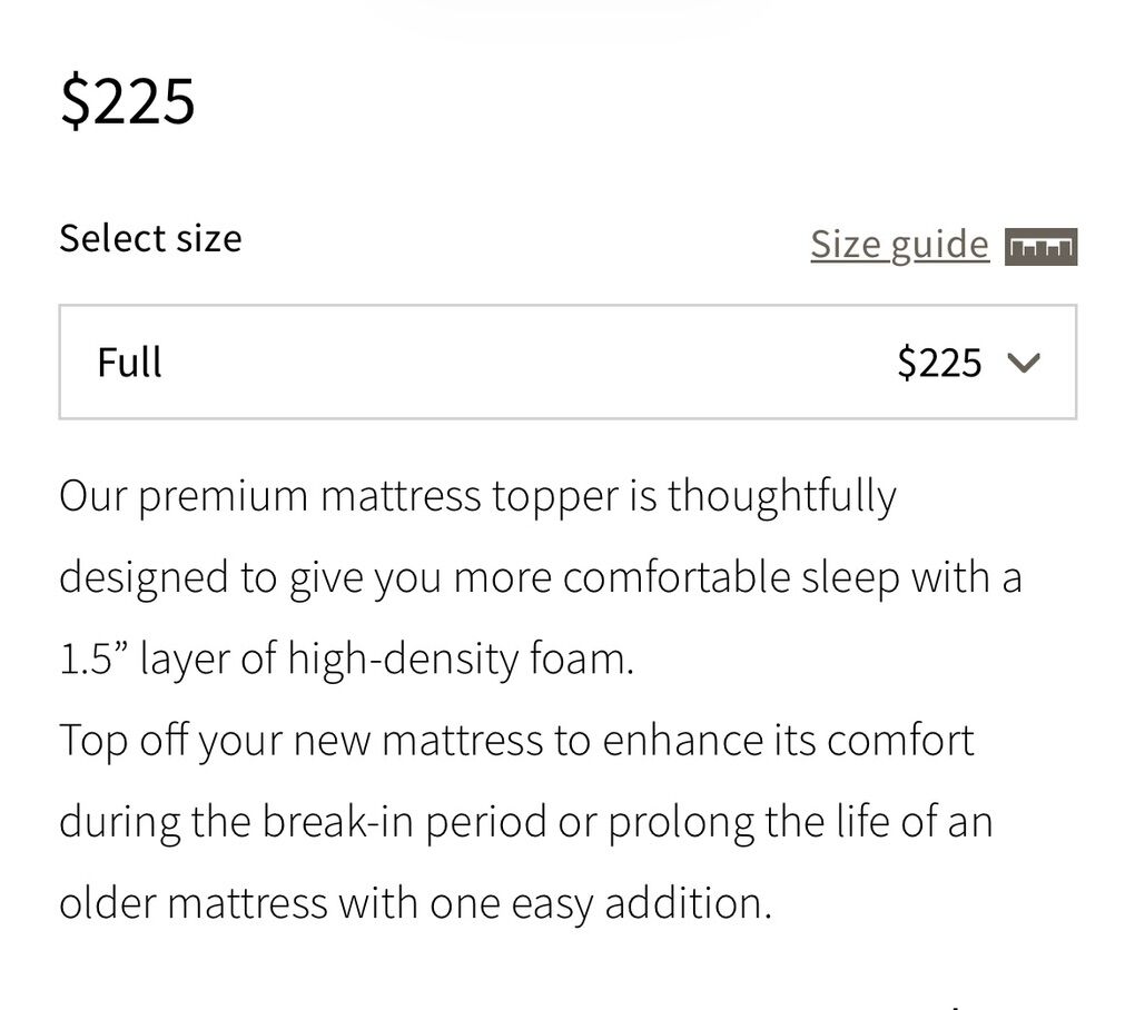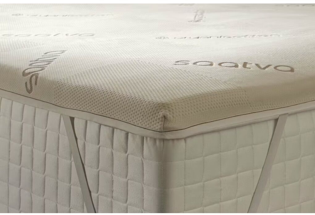 New Saatva high density foam mattress topper. Full size and 1.5”. Has elastic straps to hold on mattress and organic cotton fabric. Retails for over $200