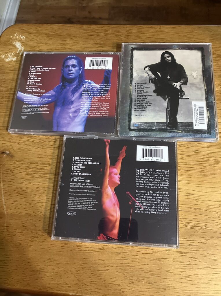 Set of 3 Ozzy Osbourne CDs: Diary of a Madman; No More Tears; The Ozzman Cometh Excellent Condition Cash Only Please