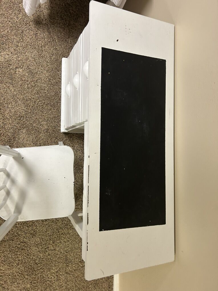 Length 47inch Height 30inch Width 18inch Located Syracuse  Has a chalkboard painted on it