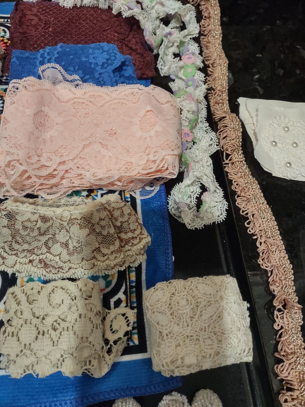 VenmoDepending on Quantity and Fancy Quality prices vary. White, ecru, ivory, brown, blue, pink, black, silver, gold, silver and gold, eyelette, sequins, daisies, roses. 1/2 inch to 6 inches wide. Cash/Venmo. In Sandy. 801-201-5350. Six photos for close-ups