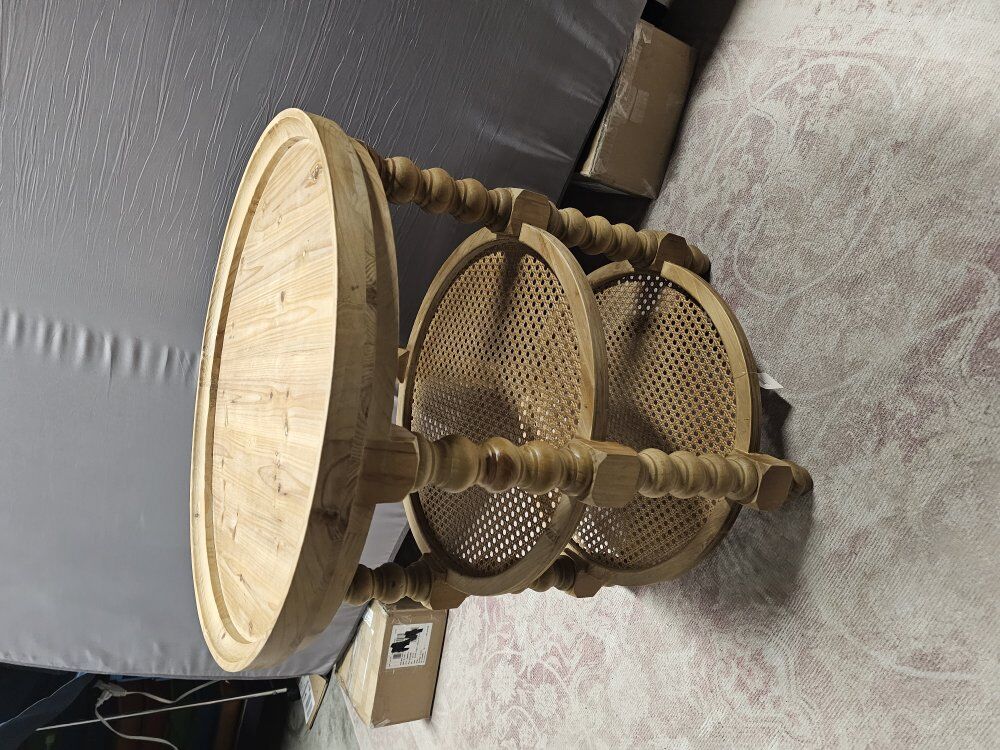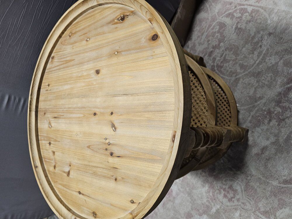 GooglePaynew Jake 25 Inch 3 Tier Side Table, Fir Wood, 2 Woven Wicker Shelves, Brown retail $264