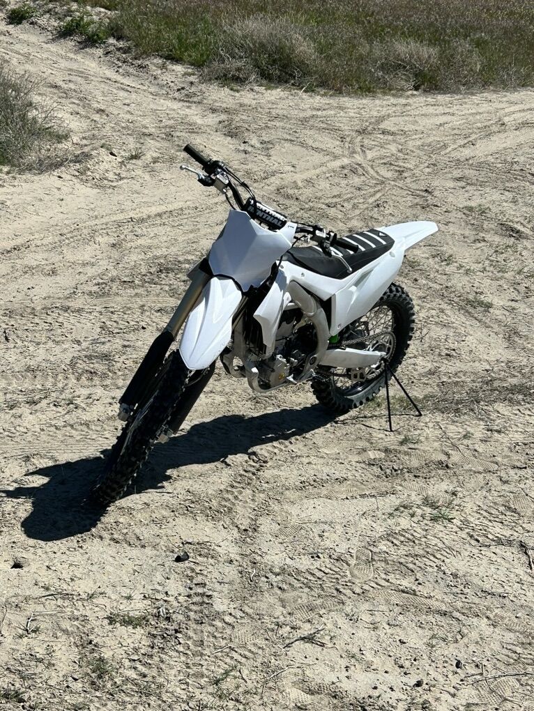 ApplePayFemale owned Bought brand new in 2024 Minimal riding hours. Title in hand I put white plastics and a new seat cover on it but I have the original green ones and the original seat cover (shown in photos) the bike currently has the white look on. Absolutely monster of a bike- I love it I’ve just decided to switch out the track bike for more of a trail hike. She rips