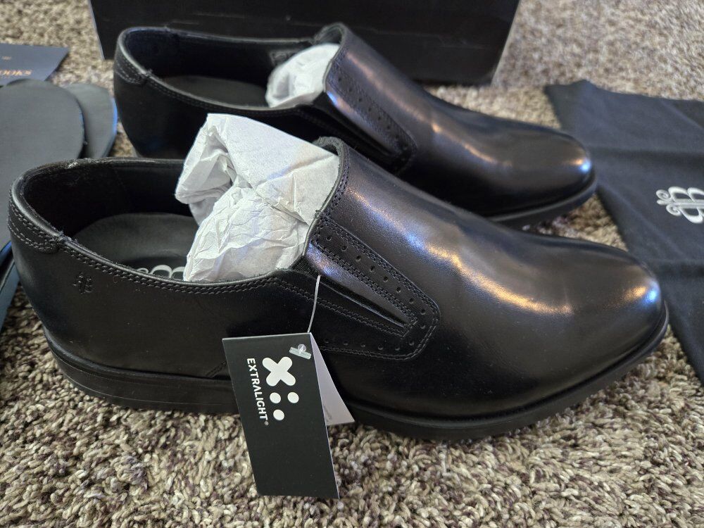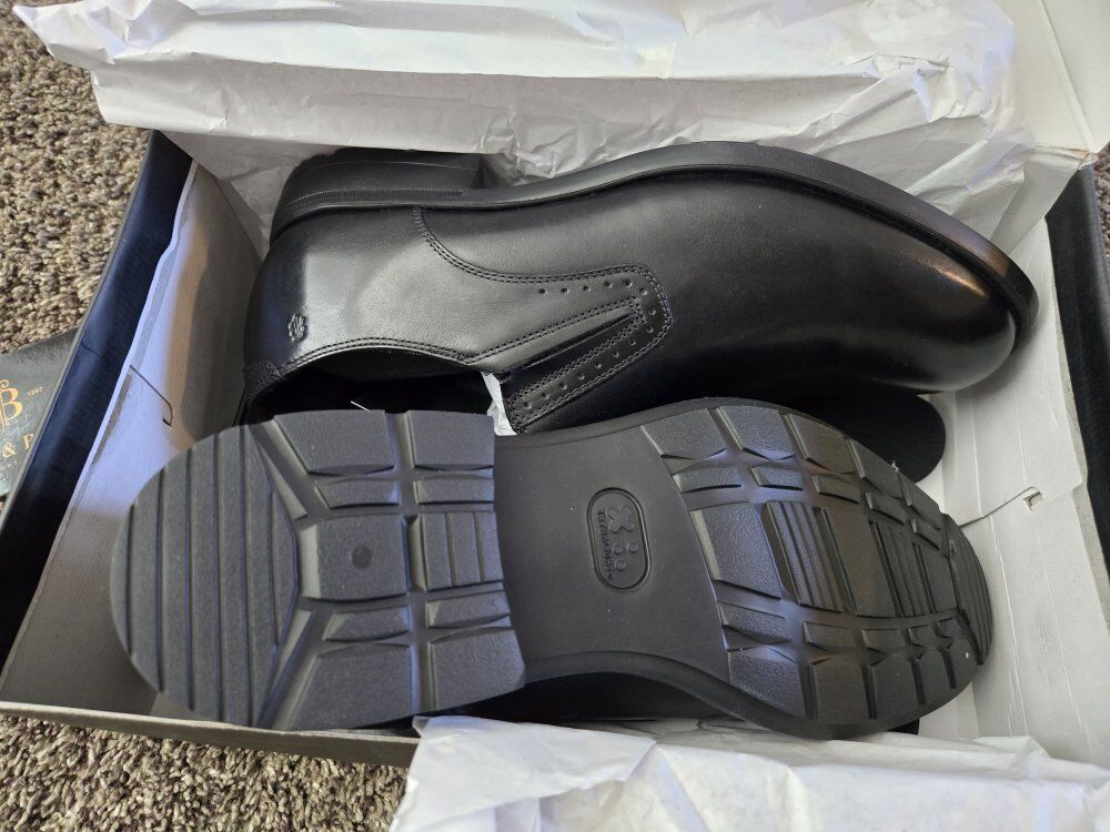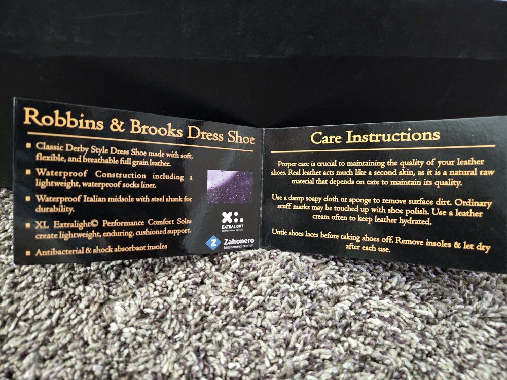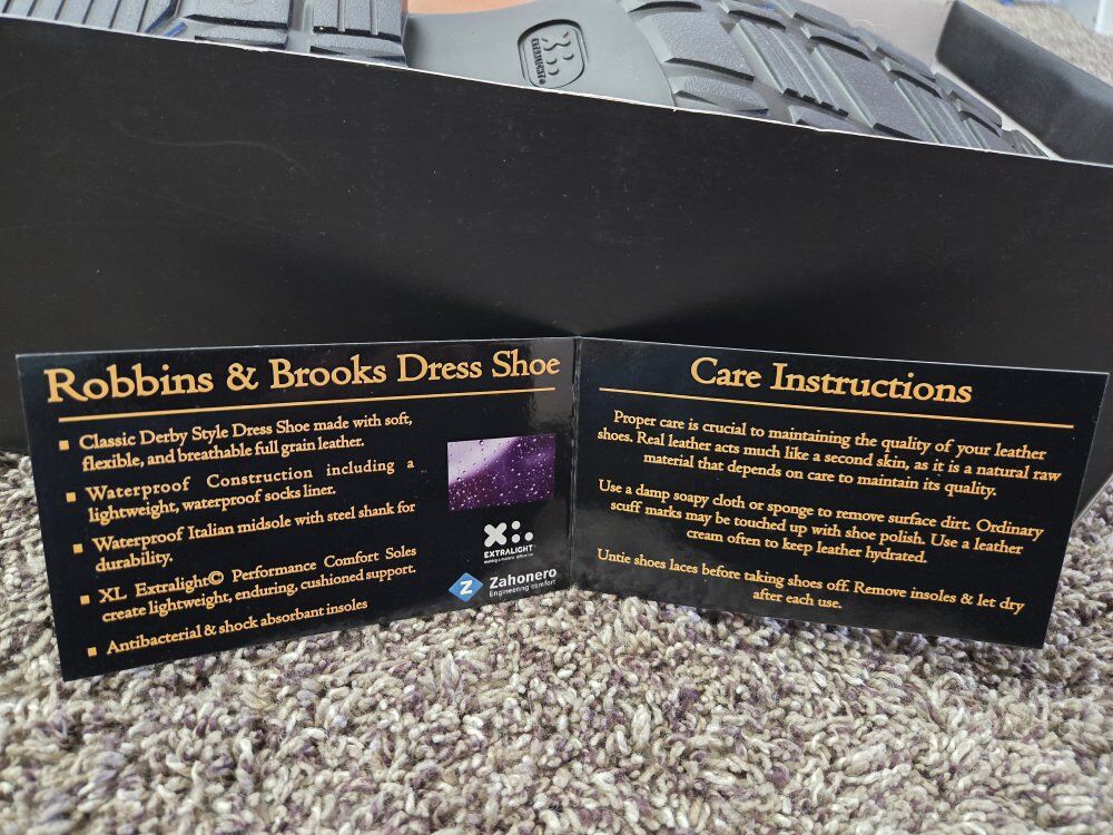 I have 2 pair of new in box Robbin's and Brooks men's leather dress shoes. Great for prom, church, missionaries, etc. One pair is Black and the other pair is British Tan. They are sized a 9.5-10. Normally $175 each pair. You can see all of the stuff they come with in the photos. Asking $50 each pair. Cash or Venmo.