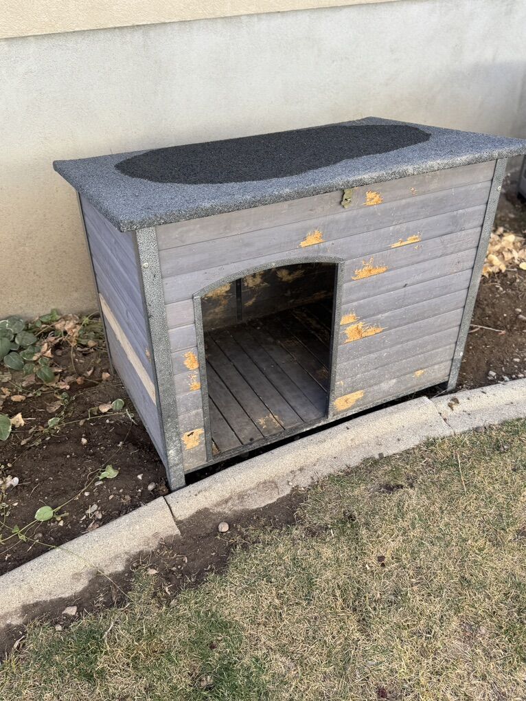2 dog houses they have a good metal frame and top. One of them needs a little work. 1-$60 1-?50