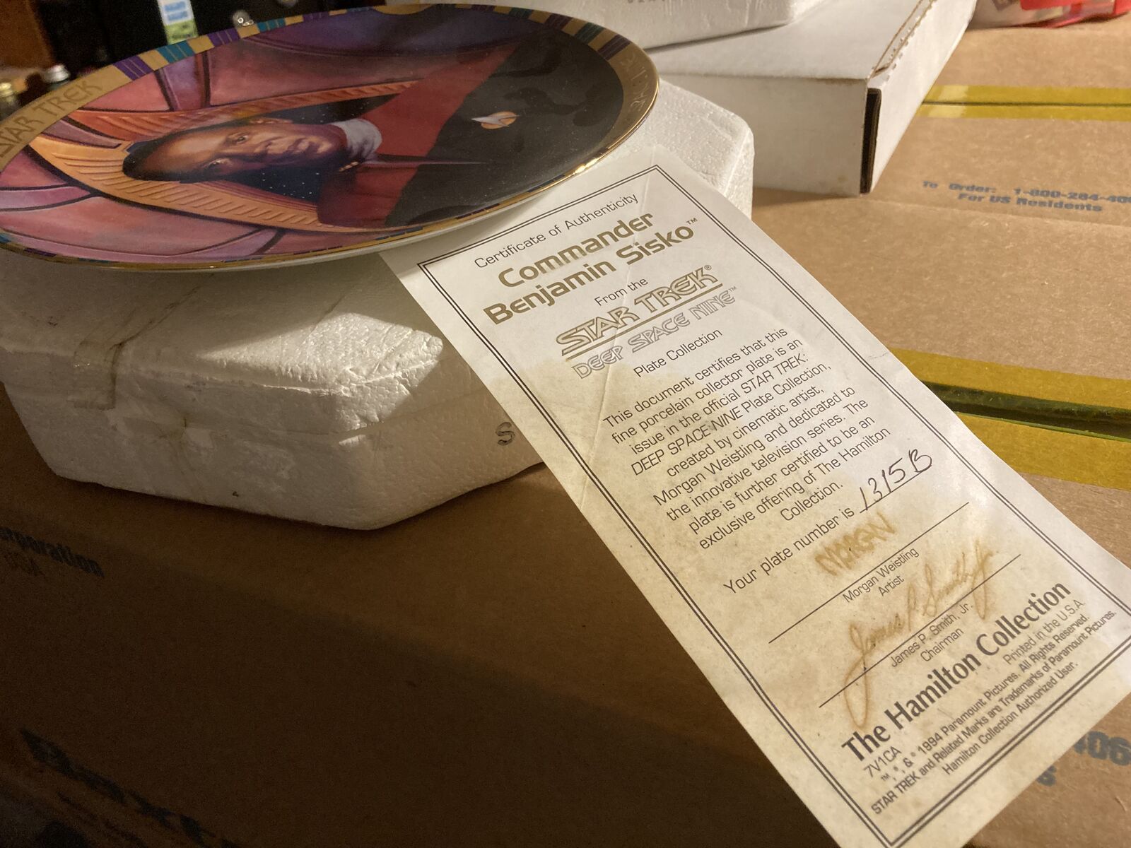 ZelleThis is plate number 1315 B of The Hamilton Collection's limited edition Star Trek - Deep Space Nine plate collection - a captivating portrait of Commander Benjamin Sisko.