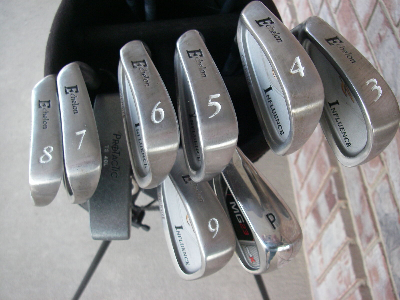 -3,4,5,6,7,8,9,PW* ECHELON INFLUENCE Stainless Irons, w/ Graphite Shafts (*the PW is a TourX MG 23)