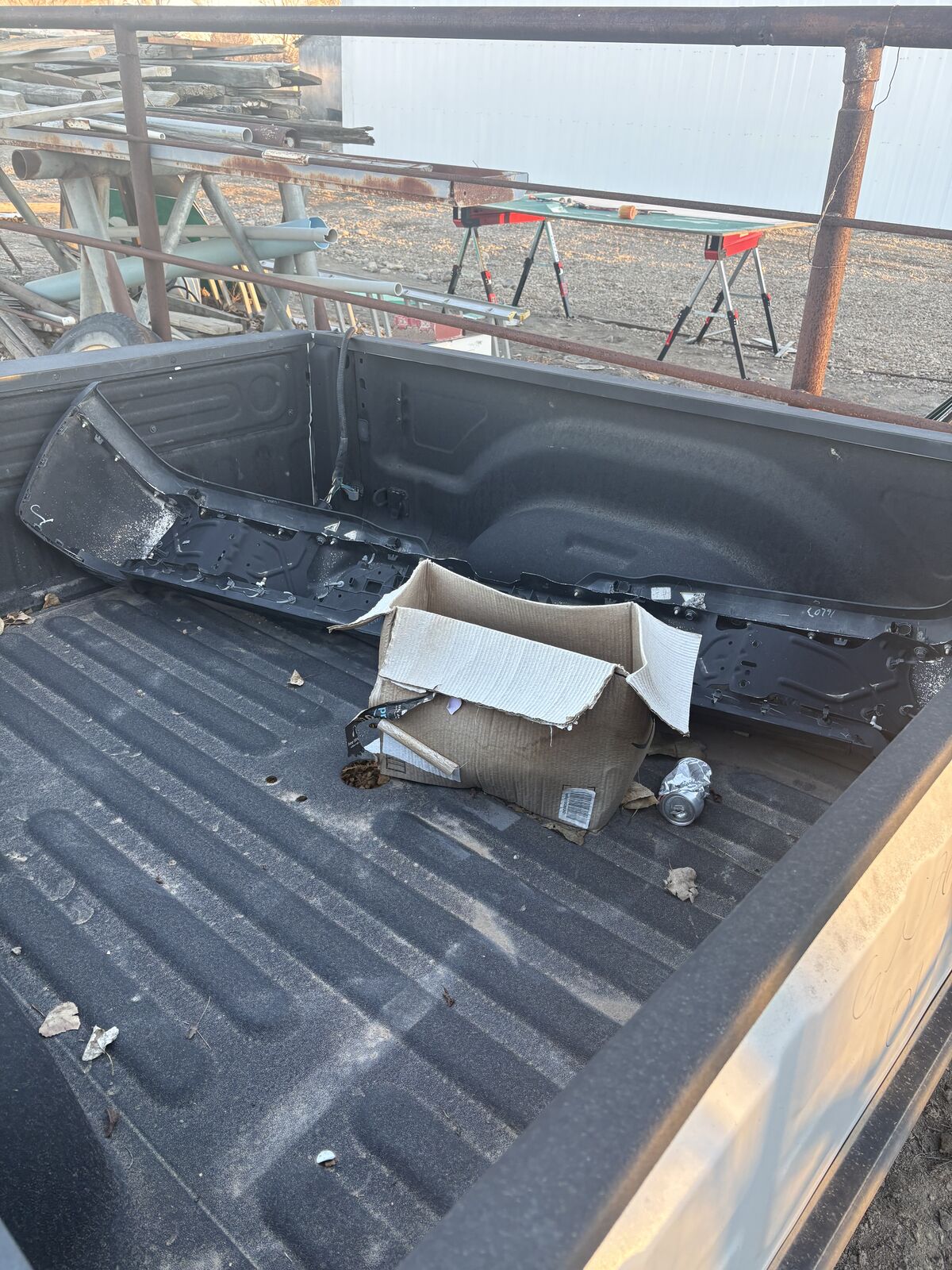 This came off from a 2019 Ram short bed it as electric lock for the tail gat, comes with a 2 5/16 ball set up from the factory, Mase bumpers laying in the back of the bed all parts are there to mount it