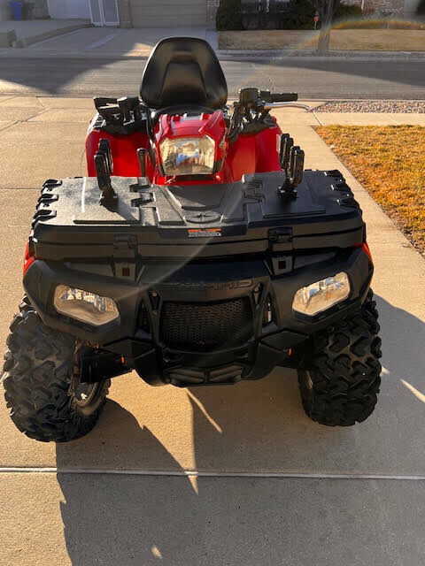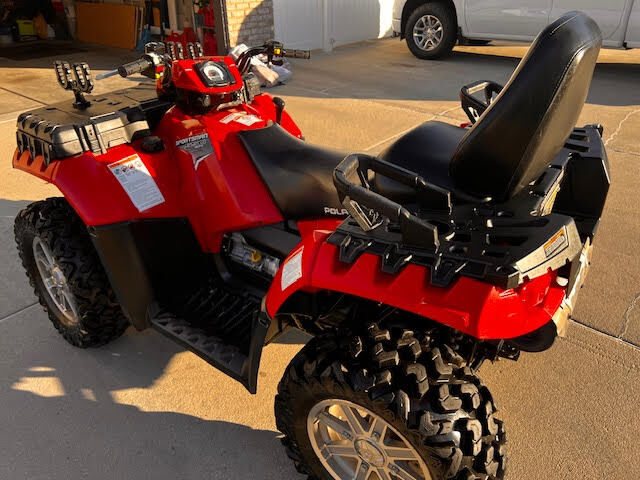 2012 Polaris Sportsman 550 Touring edition, machine is in excellent condition with low miles. (2179 Miles) Machine was completely serviced in November of 2025, all fluids changed, oil, transmission front and rear differentials. Extra oils come with the purchase, oil plus filter, both differentials’ oils and transmission oil. Purchase also comes with heavy duty canvas cover. Touring edition has the one up seat for a passenger that is removable, also included is the storage case that goes in place of the seat for single rider. Machine had 4 new Rip Saw tires installed end of 2024 and are still in almost perfect condition. The electronic power steering makes this easy to handle on the rough trails.