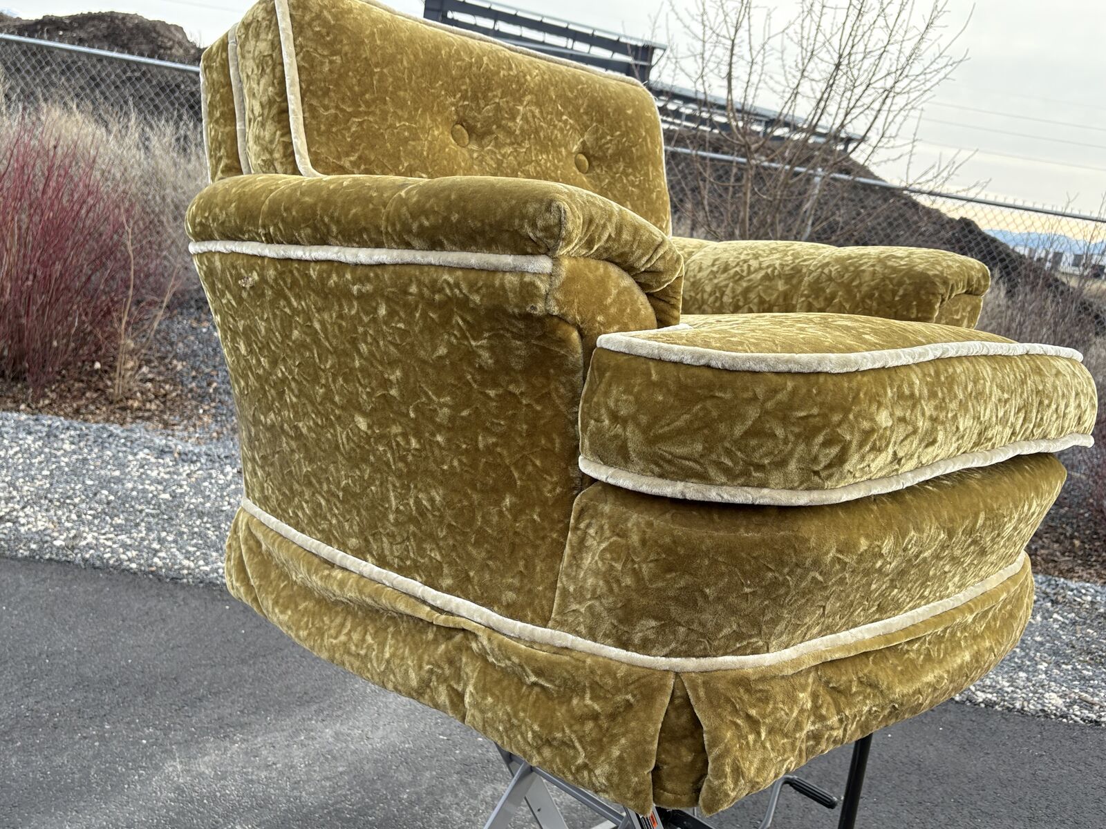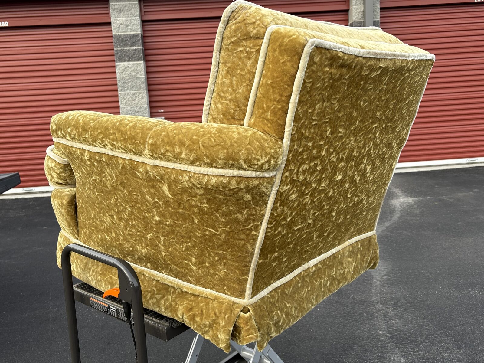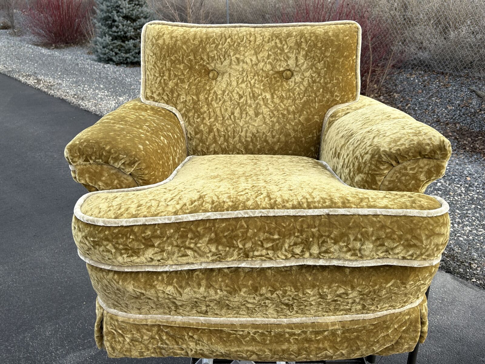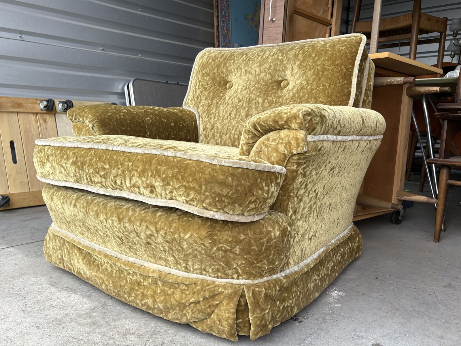 Soooo comfy!! Fantastic, groovy Mid Century Modern accent armchair club chair, amazing condition. This chairs jugs you when you sit in it. The fabric is so fab and is in amazing condition!!