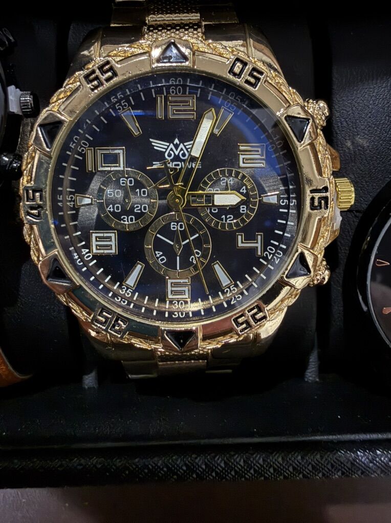 These are classy looking watches but are definitely a cheaper brand. These are all new with plastic and dial lock still in place. Message for questions.