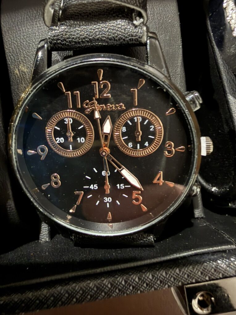 VenmoNew watch box with new watches. Bought for a gift but changed my mind. Need it gone. Selling as a set or will separate. Paid over $150 for all, but will sell for $110.