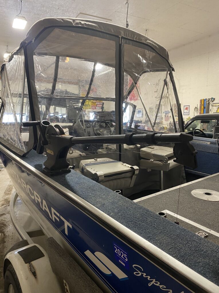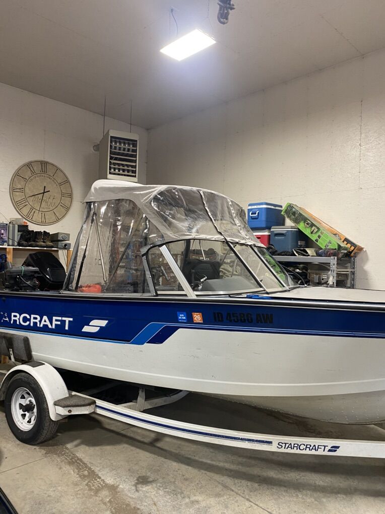 1995 19’ StarCraft superfisher 115 two stroke mercury motor, 9.9 four stroke Tohotsu trolling motor with remote trolling plate, Lowrance hook 9ts fish finder, 1 Scotty electric down rigger 2 manual down riggers, full enclosure 5 seats. This is a great boat set up for fishing. Nice deep V boat great in rough water.