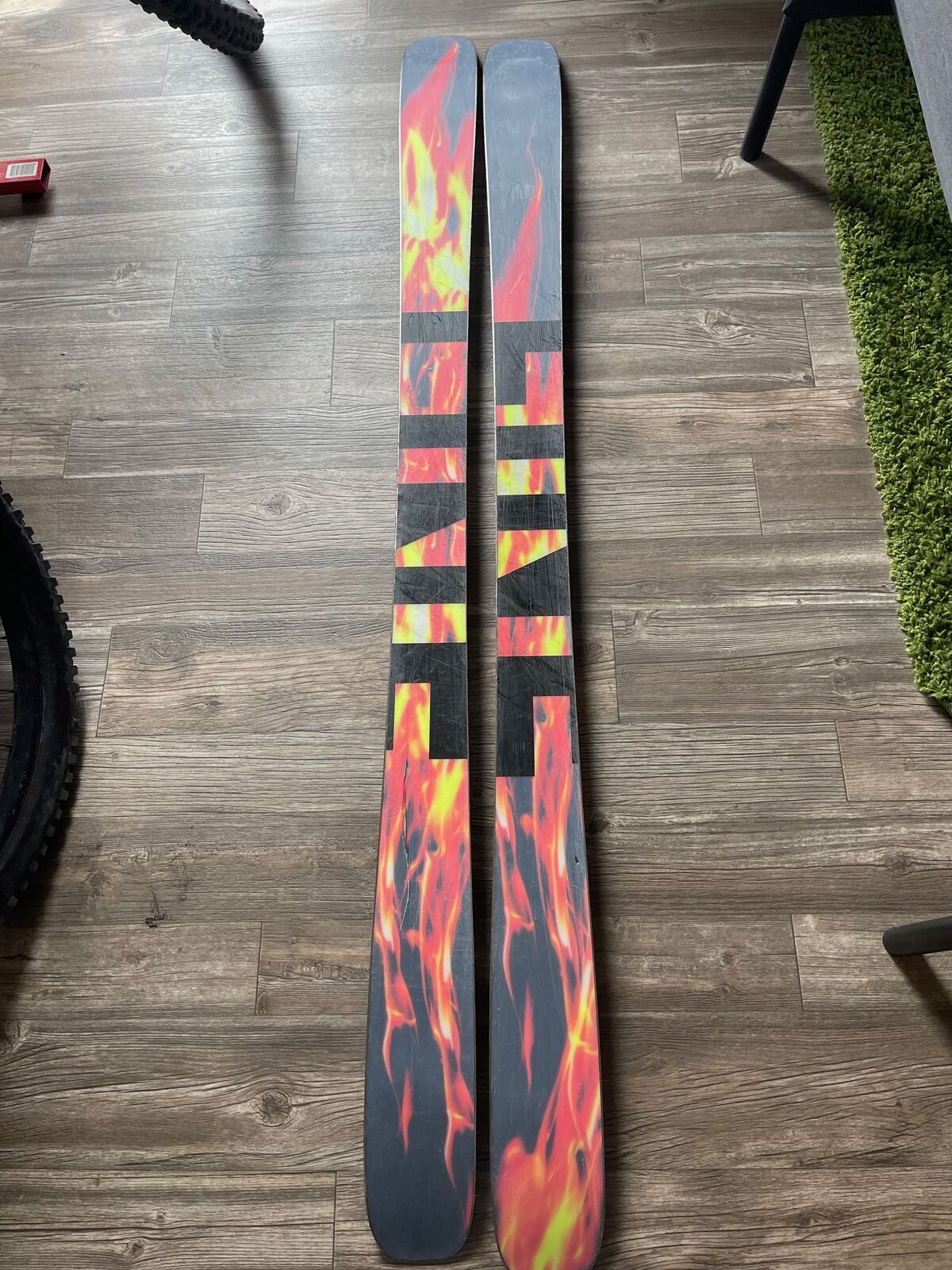These skis are used but still in solid shape! These are slightly on the stiffer side, great for solid landings, skiing fast, and going big! The narrower width underfoot makes switch-ups and technical rail tricks a bit easier than with a wider ski.