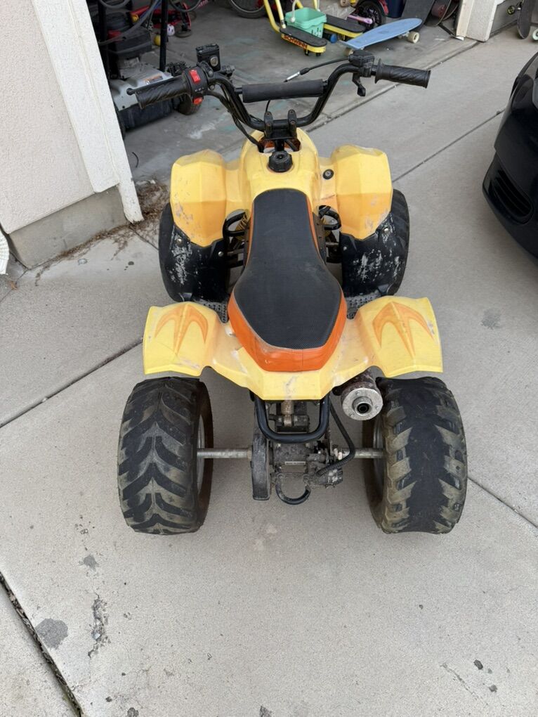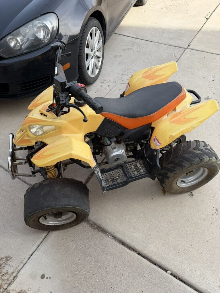 We just did a lot of work on this, new carb lots of new electrical and got it all cleaned up. it’s a 125cc but it is the smaller size. Top speed is 35 with my son who weighs 200lbs so a kid that actually fits it would probably be high 30’s low 40’s. It runs well we’ve had it for close to 10 years and haven’t rode it a whole lot and it sat in our garage for a long time. Needs tires my kids burned these up on the street instantly. They all hold air but a few of them are smooth. $350 as is or $450 if I put tires on it.