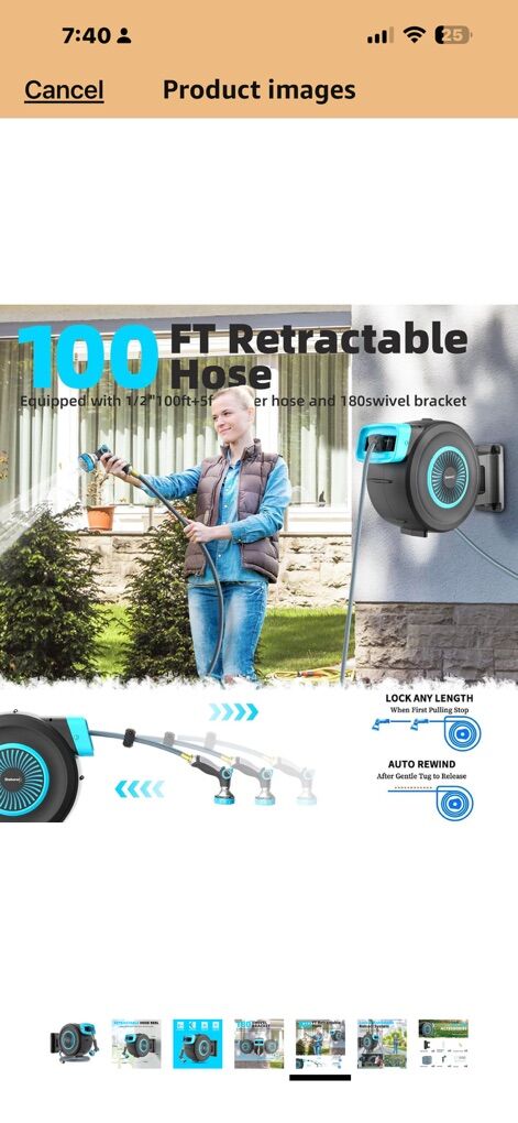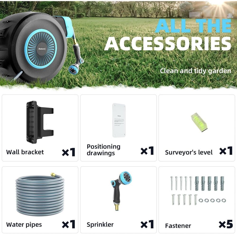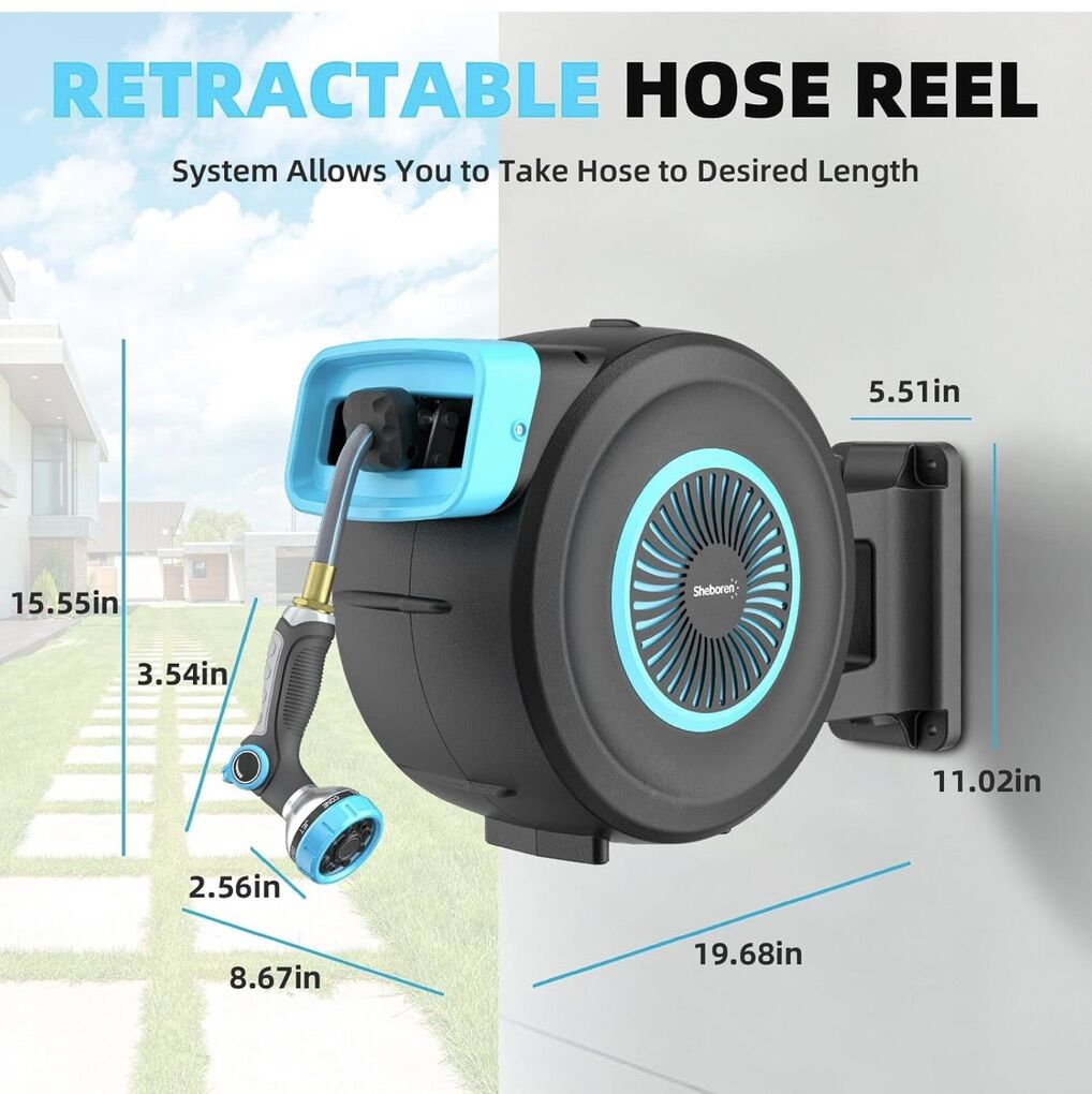 1/2 100+5ft Garden Hose Reel Sheboren Automatic Retractable Hose Reel with Any Length Lock Wall Mount Watering Hose Reel 180°Swivel brackeT