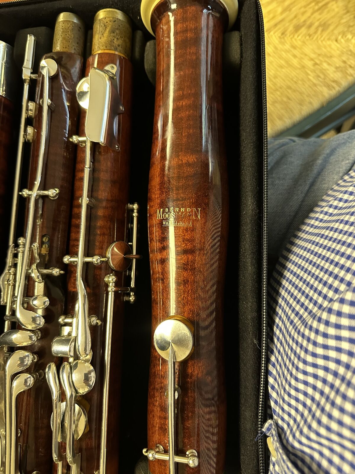PayPalMOOSMANN 150, ser# 88122, whisper lock, Eb trill, 9 rollers, high D, Marcus Bonna case, Heckel CD2 bocal, Moosmann A1GD bocal, bocal case, Hercules bassoon stand, $14,000 (offer), excellent condition lifetime horn, solid intonation, beefy thick wall horn, , professional instrument for advanced players