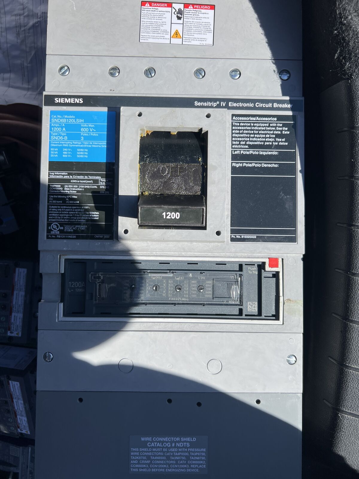 • (1) SND6B120LSIH 1200A main breaker