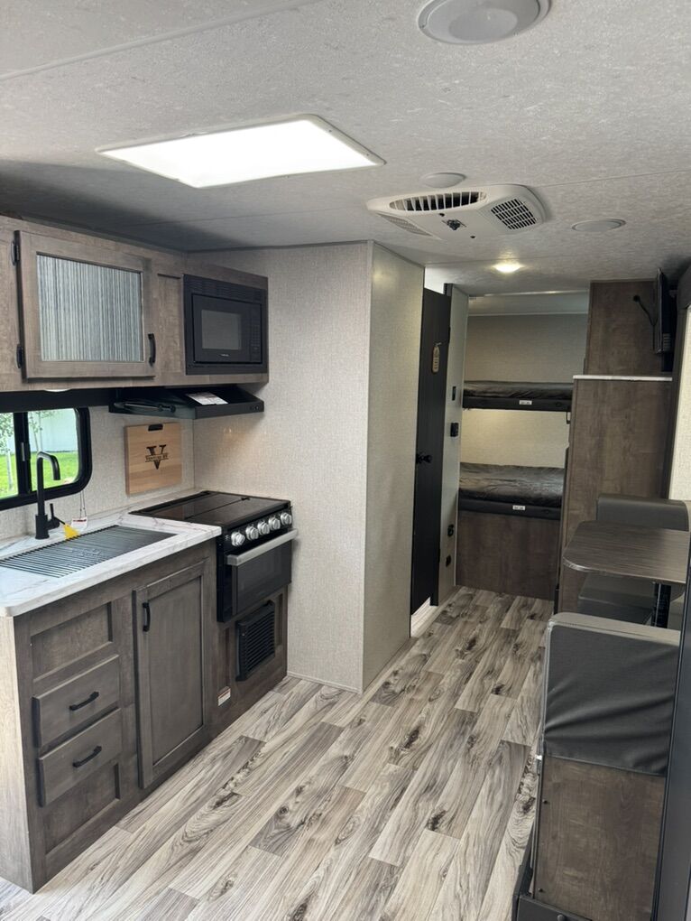 This 2022 Venture Sonic SN211VDB is in excellent condition and ready to camp today. It has a fantastic layout with a rear double-over-double bunkhouse, front queen bed, full bathroom, and a slide-out for extra living space—perfect for families or anyone who wants room without towing something oversized.
