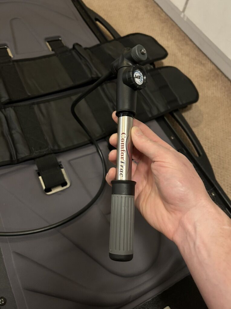 VenmoThe distraction machine is an excellent condition. Comes with the rolling carrying case and factory pillow. Stretches with a pneumatic pump.