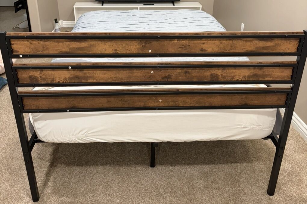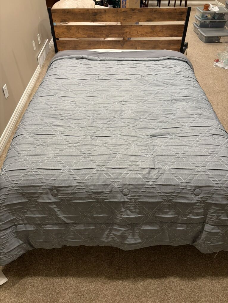 VenmoFull Size Bed Set – Everything Included! Bed frame + mattress + sheets + comforter all included. Very good condition and clean. Ready for pickup! Message me if interested