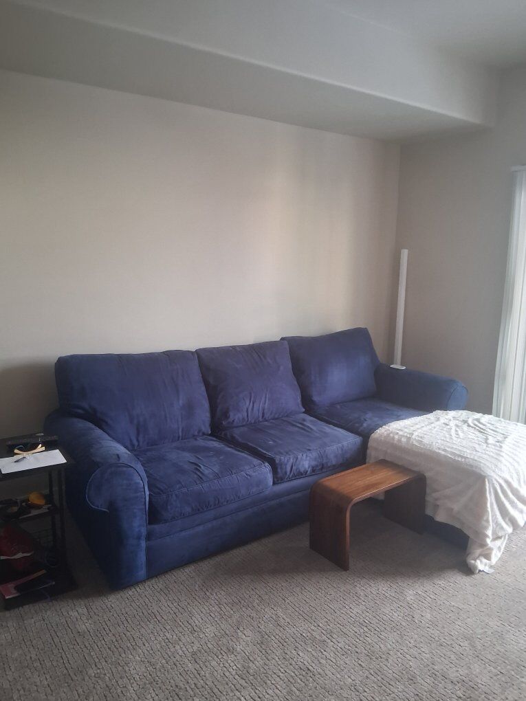 $400 price is firm cash only Comfy for sitting and sleeping, blue microfiber with removable / washable cushion covers. Non smoking home. Buyer must be able to pick it up and have enough help to move it, we can't help. please, serious buyers only and no scammers. feel free to message me with any questions