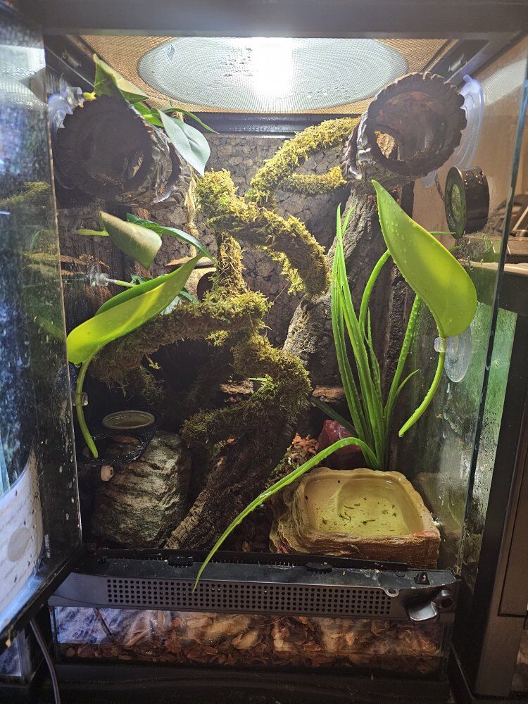This is a complete, functioning habitat – not a starter kit. Gecko is active, alert, and feeding well.