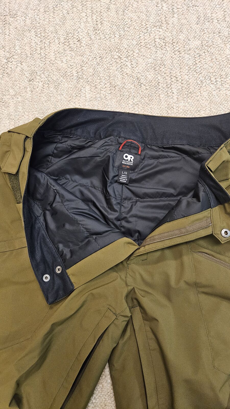 VenmoOutdoor Research (OR) Snowcrew pants (Men's Large). These are such nice snow pants but unfortunately, I bought them one size too large. They've only been used twice - both times were short snowshoe hikes. They worked great, but I realized they were just too big for me. I'm 5'10" and 190 lbs.