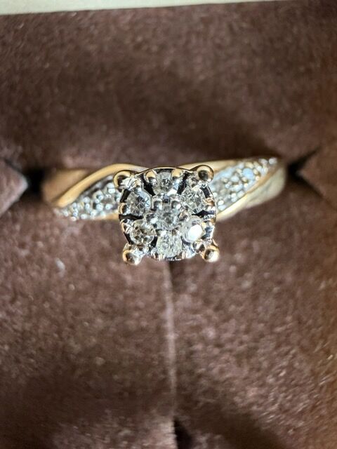 VenmoCluster diamond engagement ring and wedding band, size 5 1/2, in like-new condition, recently cleaned. These rings are yellow gold and can be resized.