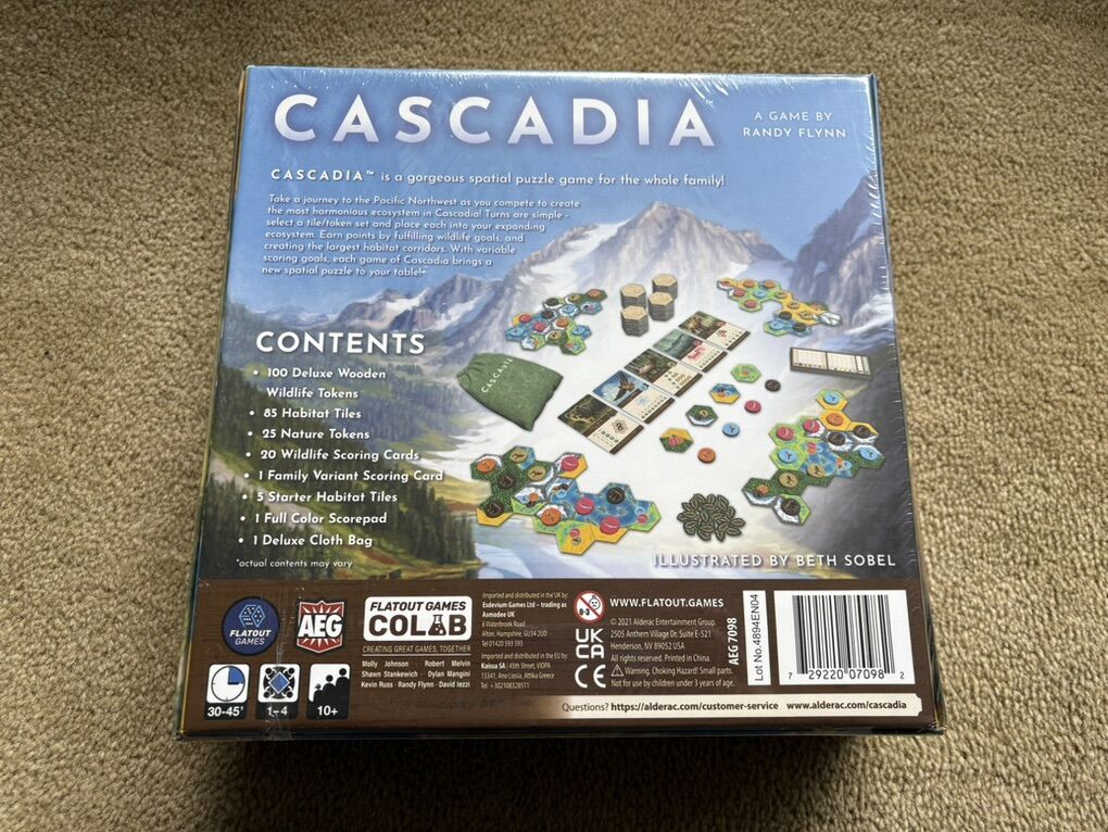NEW (sealed in plastic) Cascadia: A gorgeous spatial puzzle game for the whole family! Randy Flynn, Beth Sobel, AEG, Flatout Games, 2021. 1-4 players, age 10+. New, unopened condition. Text only. Cash or Venmo.