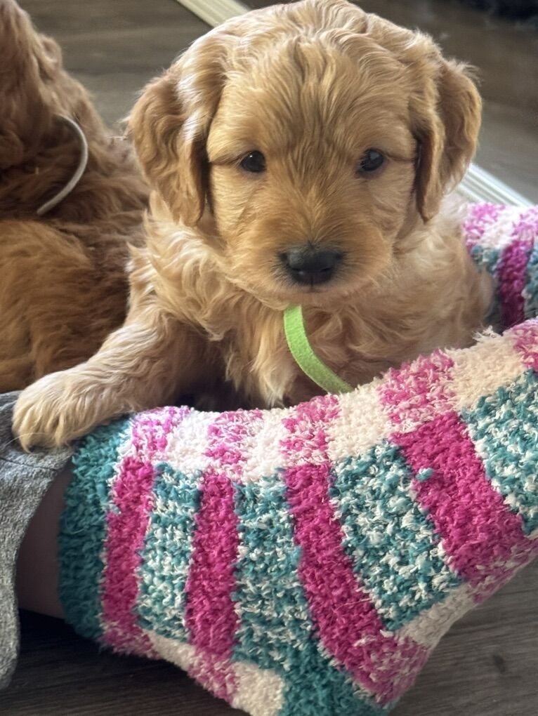 Our sweet mini Goldendoodle puppies are ready to find their forever families! Born January 1st and raised right in our home, these little ones have been loved, handled daily, and socialized to help them grow into happy, well-adjusted companions.