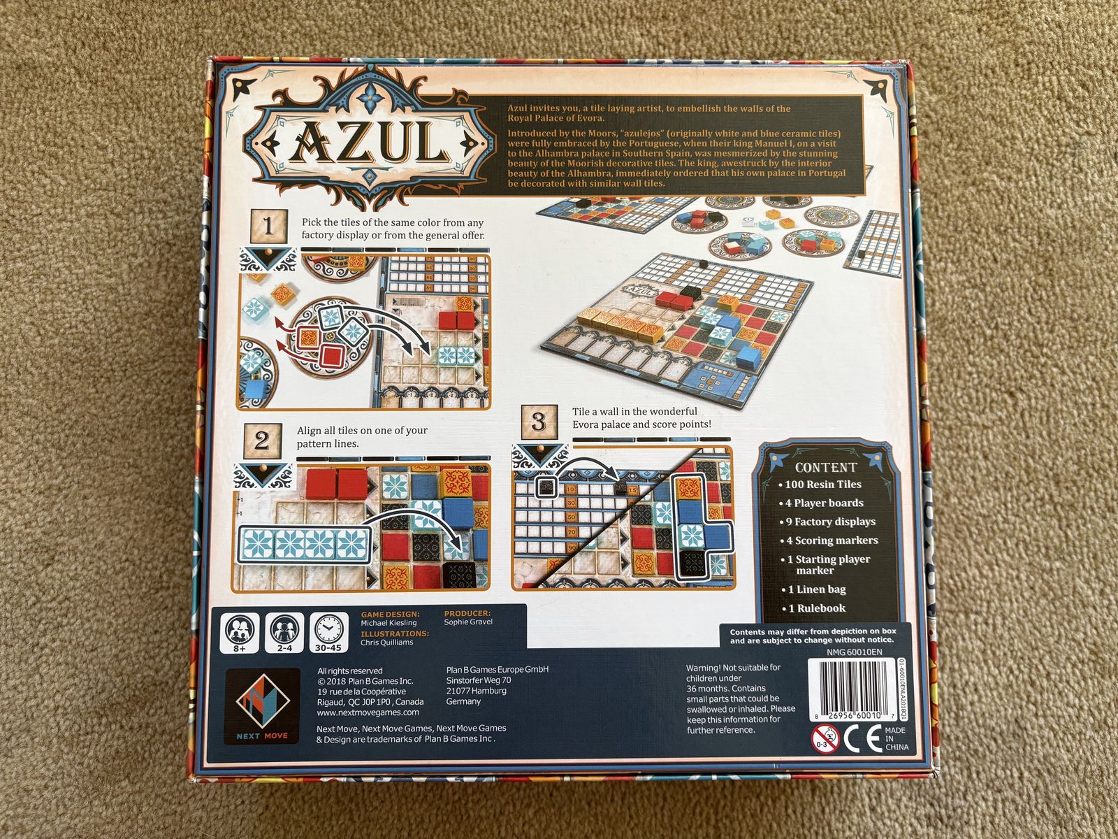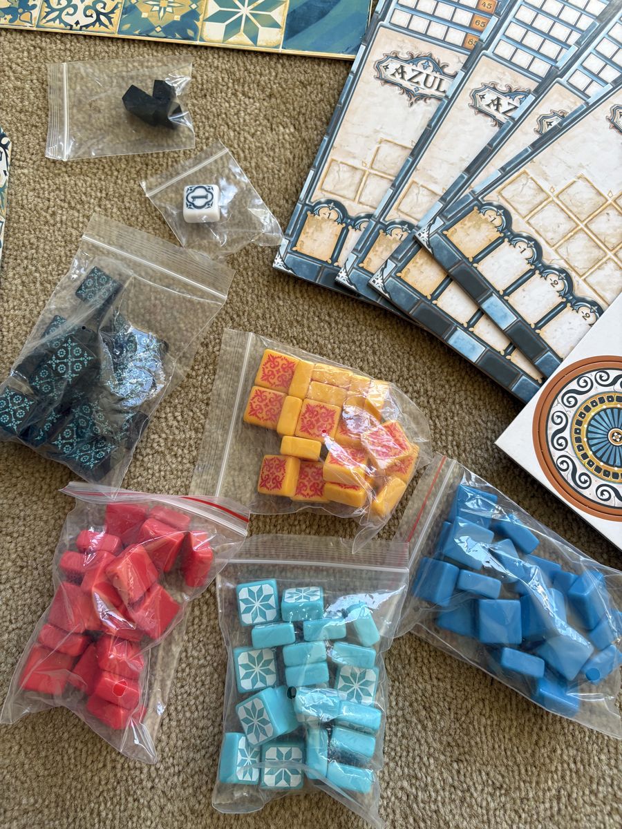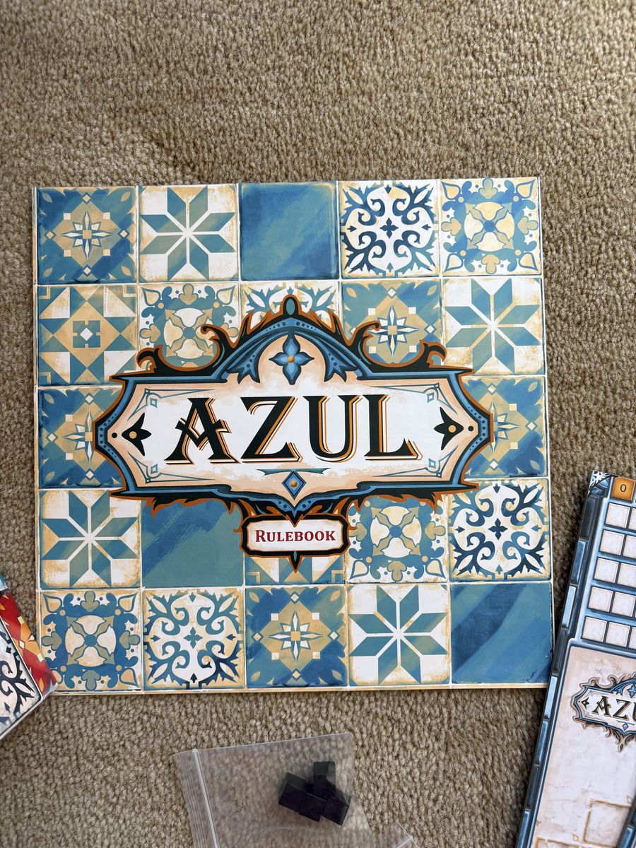 COMPLETE/NEW (open box, unpunched components) Azul: award-winning mosaic tile placement strategy game. Next Move, Michael Kiesling, Asmodee, 2024. Age 8+, 2-4 players. Excellent condition, like new--unpunched components. Text only. Cash or Venmo. Discount on multiple items.
