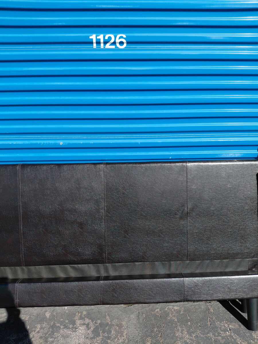 Check out this king faux platform bed. Overall, it is in great condition. There might be some imperfections from moving, a few scratches, and signs of use, etc.