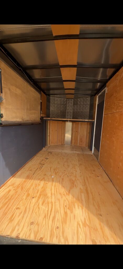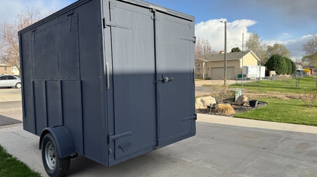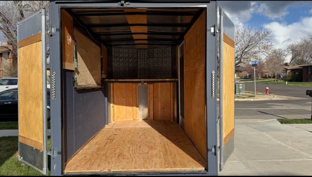 This was originally going to be a mobile soda trailer but it can be used for anything. It comes with two mini fridges, a deep freeze and a cabinet with a wood table top. Service window is already built in and floor has been epoxied.