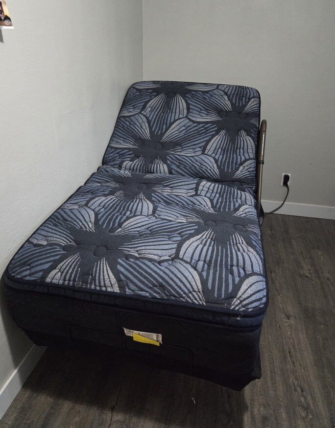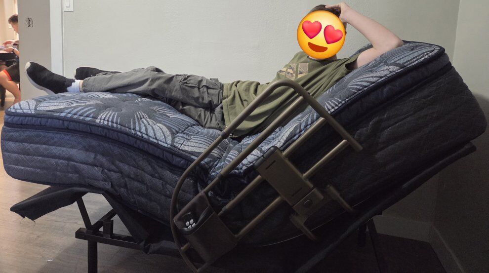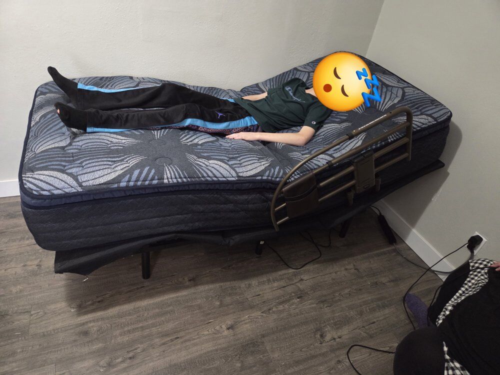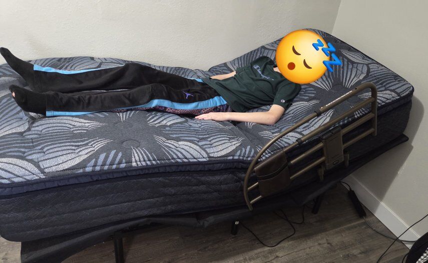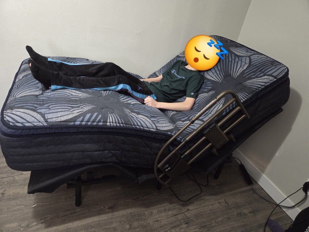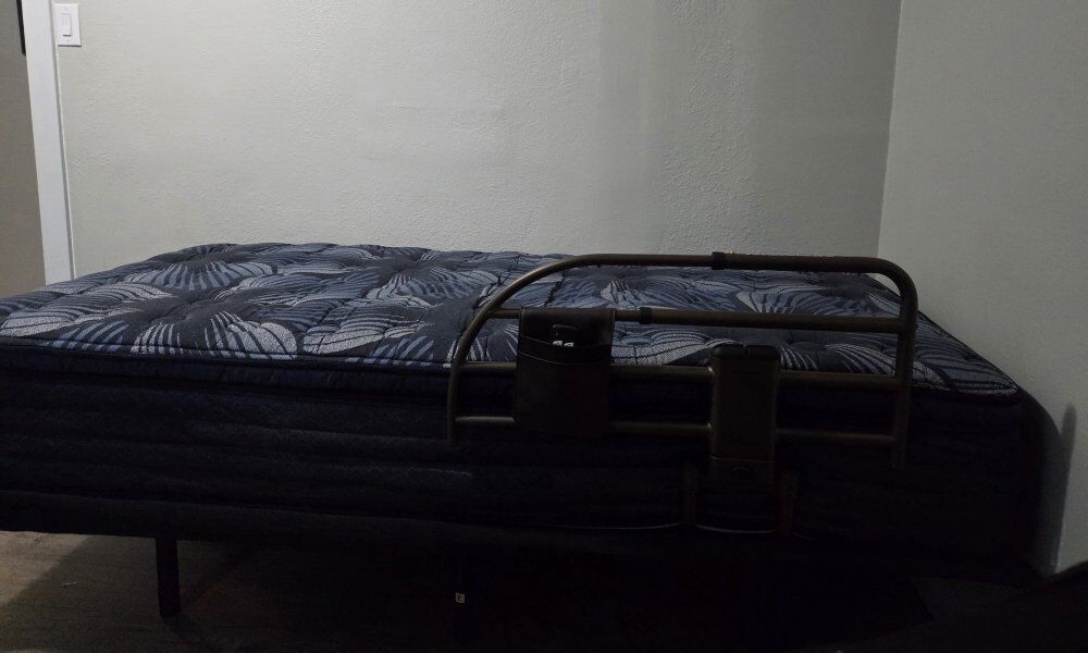 Bought in 2024 mattress like new always had a mattress cover on it when used. Adjustable bed works great. We bought the railing separately but it is adjustable and can be taken off. In total mattress bedframe and railing we paid $1250 will sell for $700 or best offer. Pickup in Clinton